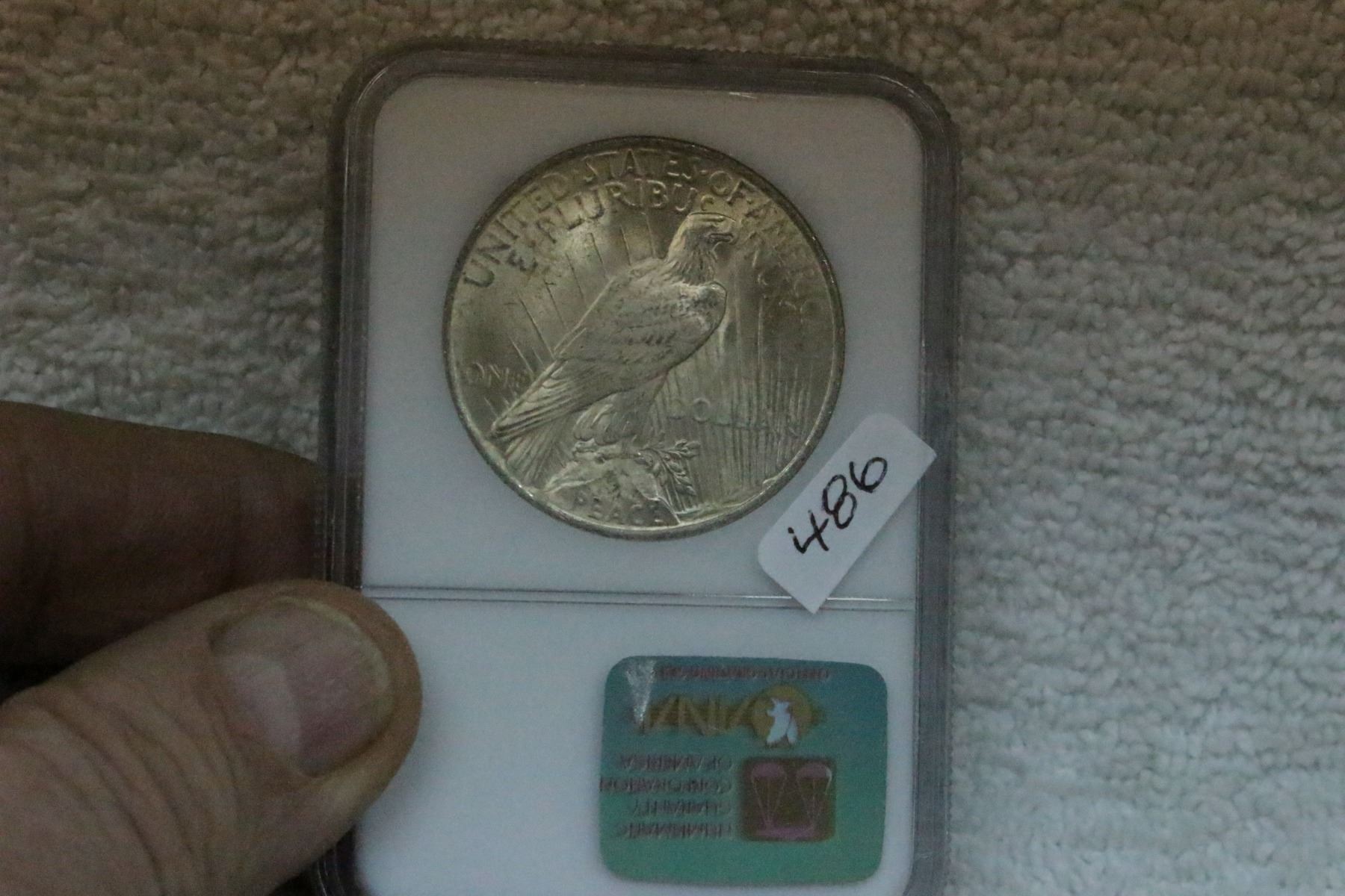 Clyde Auctioneering does not grade coins. The grading depicted has been done by the consignor. We, the auction company, assume no responsibility for grading shown. Most bidders know more about coins & grading than we do, therefore, adjust your bids accordingly.