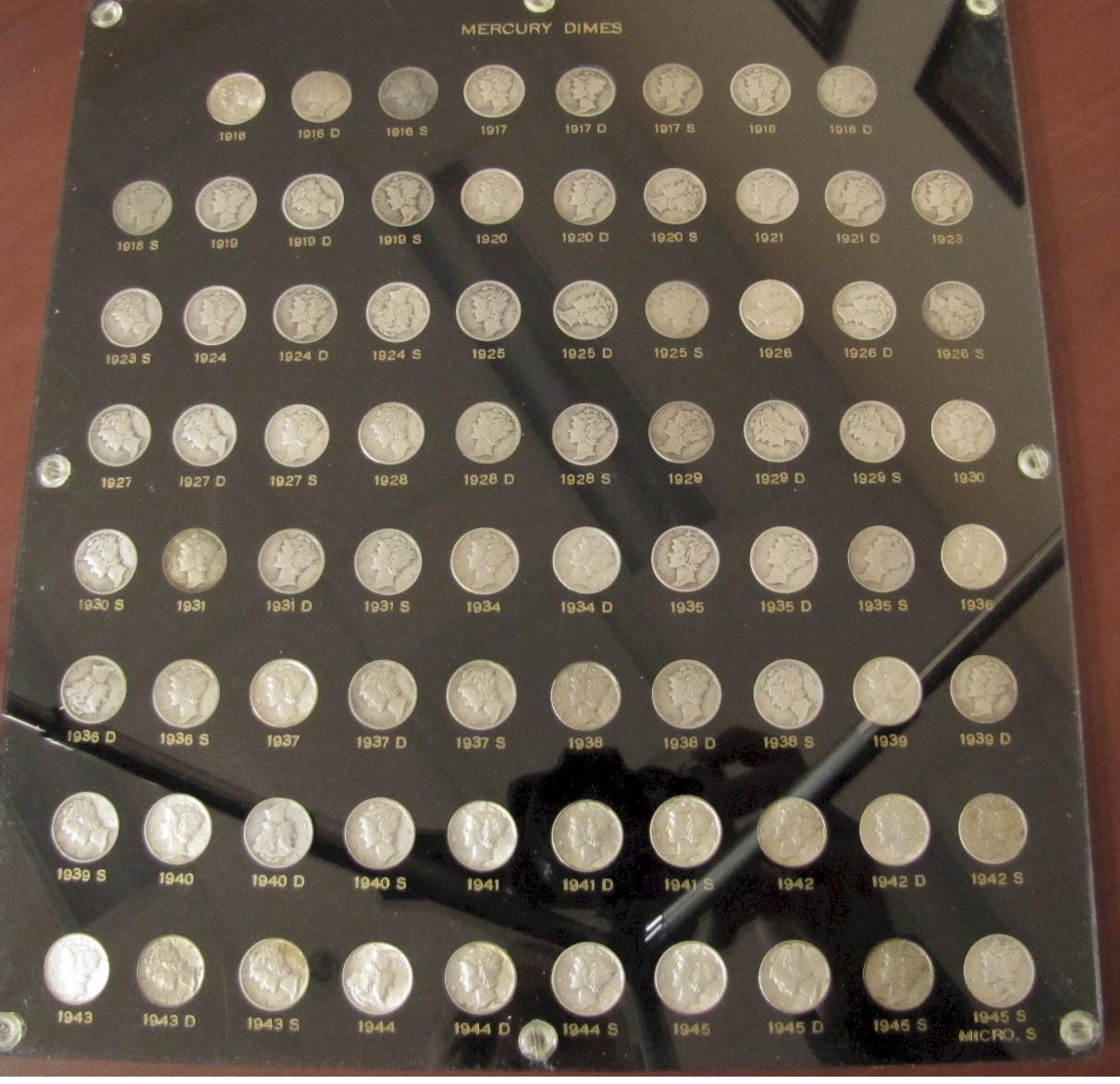 U.S.A. Mercury 10¢ Set Complete, 78 pcs in all,  1916-1945S Micro S.   Housed in a Capital Holder, coins grade VG to UNC.  Should be viewed.