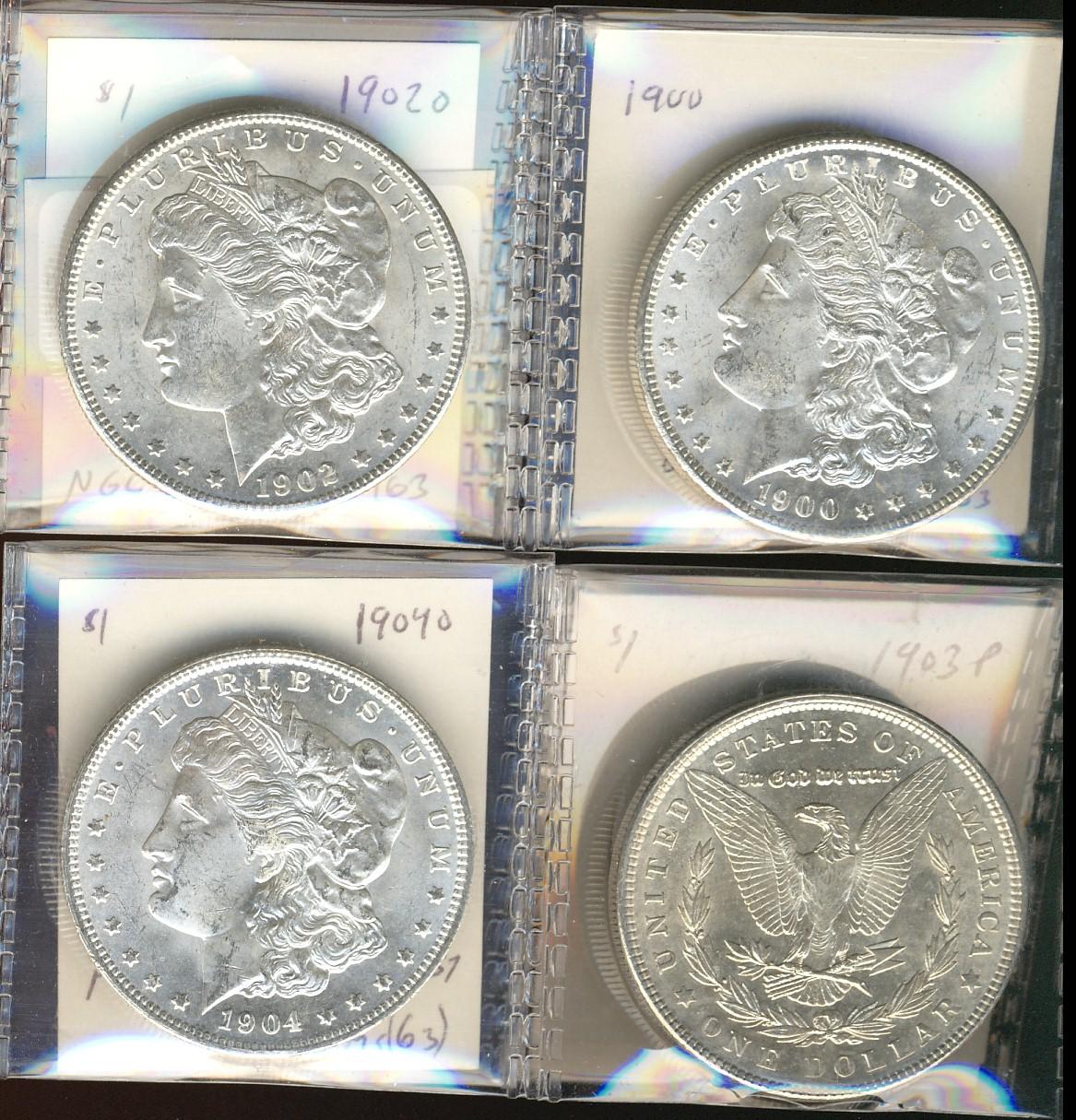 U.S.A. Morgan Dollars, 1900, 1902-O, 1903-P & 1904-O. Lot of 4 coins all Choice BU and fully lustro