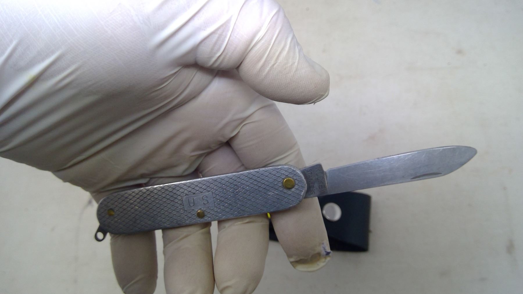 U.S. ARMY ROCKEY FOLDER VBLADE 2 3/8" WITH LEATHER SHEATH