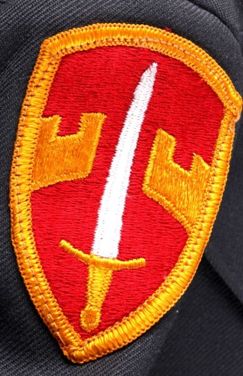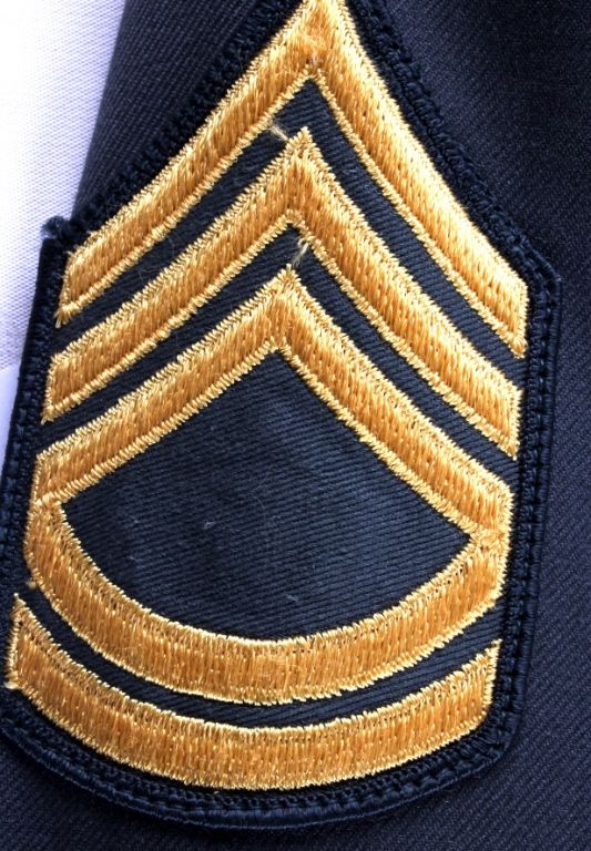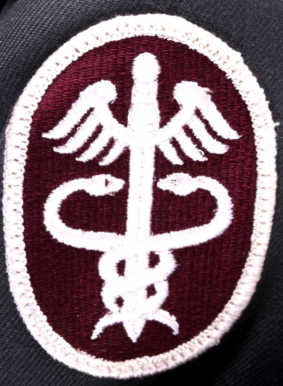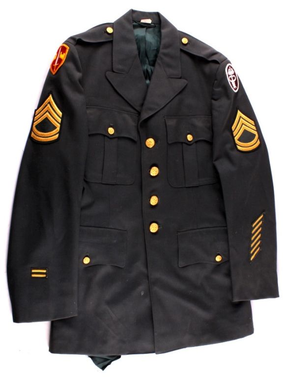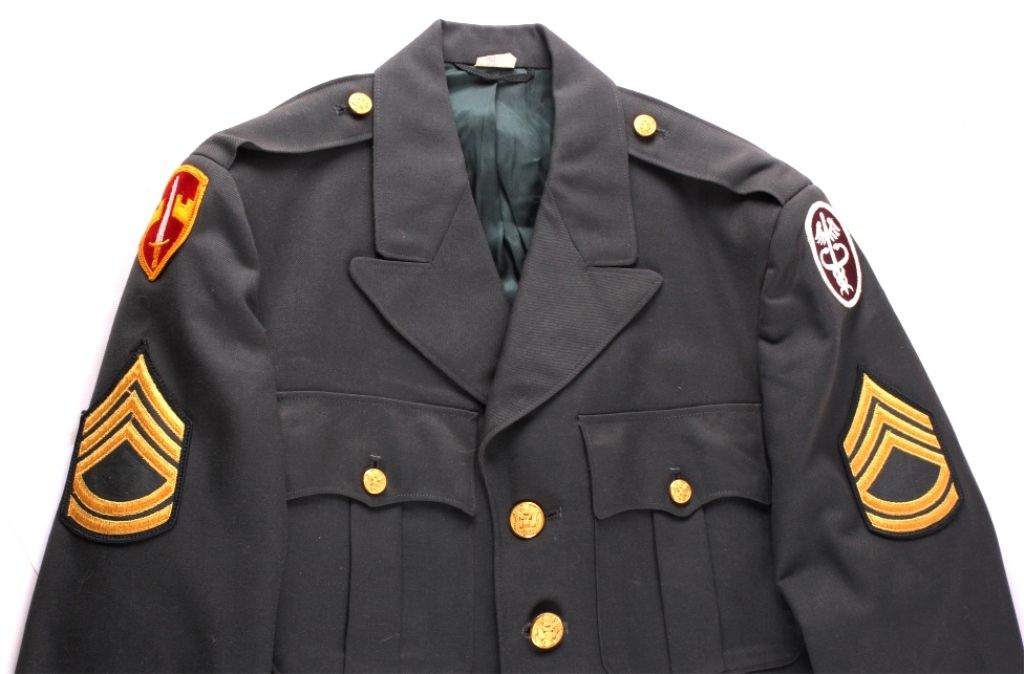 This is a U.S. Army jacket with patches.  Included is an infantry patch, a medic patch,  and Sergeant patches. Also, there is  Overseas Service hash patches. The jacket is  in good condition. It is size 38L.