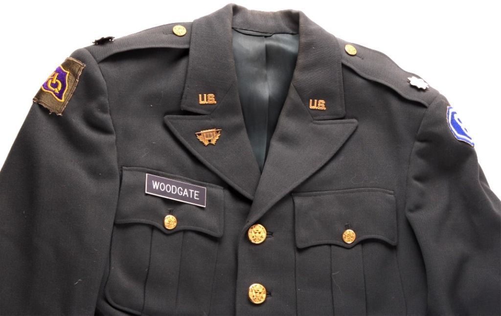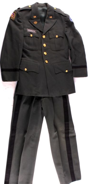 This is a U.S. Army Lieutenant Colonel  uniform. The uniform has the "GHQ" and "8th  Corps" patches and "U.S." collar pins.  Included are the pants and coat. The uniform  is in good condition.
