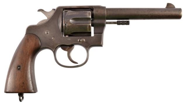 * "U.S. Army Model 1909, No. 31286" stamped on butt, 5.5" barrel. "RAF" & "FB" stamped on right side of frame.