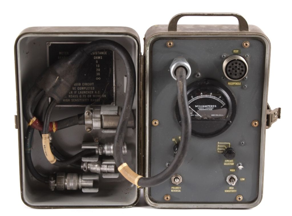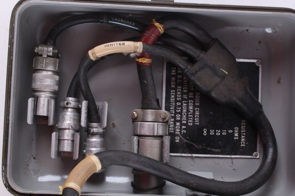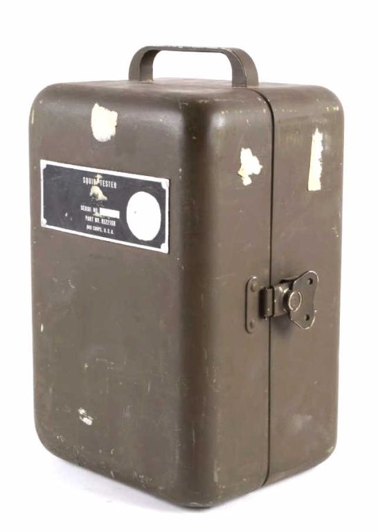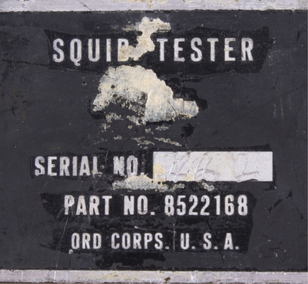 This lot includes a rare U.S. Army squib tester. A squib is an electronically fired weapon. This tester was designed to test the circuitry and components of these weapons. The tester is in overall solid good condition showing some slight wear, working condition has not been verified. The tester measures 6" x 7" and is 11.5" tall.