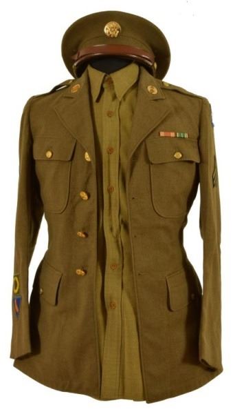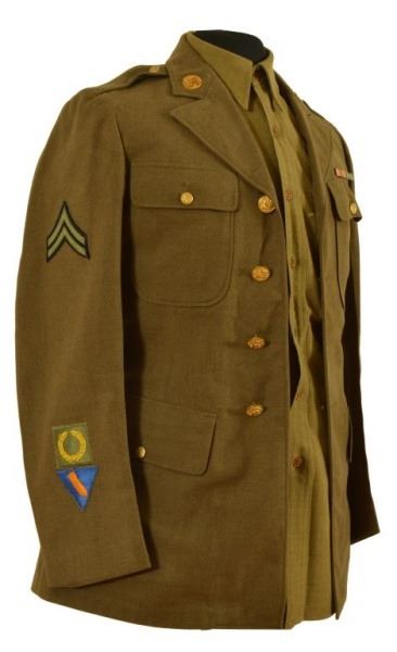 Owner was Charlie Barbera Jr. Tunic marked with Spec No. 8-31D, Dated 02/02/1940. Has 8th Service Command on shoulder. Right sleeve has armament sleeve patch and meritorious unit award. Collar brass is enlisted U.S. and Ordance Bomb. Served in Europe as a Corporal.