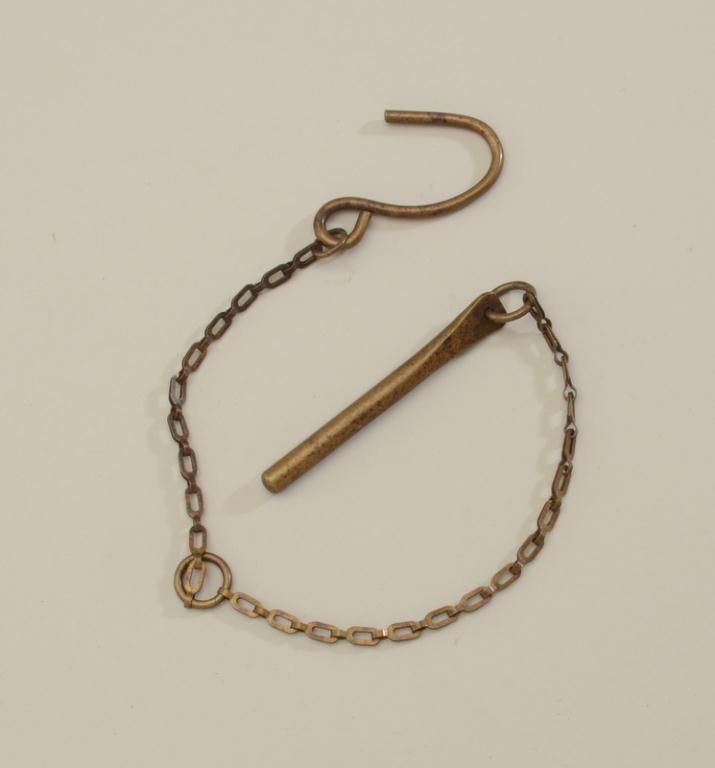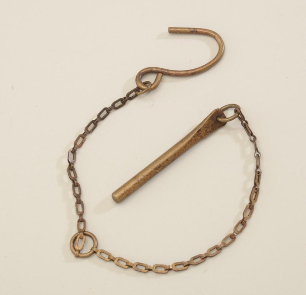 U.S. Army brass revolver storage device for hanging a Colt SAA cavalry model or S&W Schofield in an armory or barracks in overall very good condition with a beautiful patina; a great U.S. military revolver accessory.Est.: $125-$250.