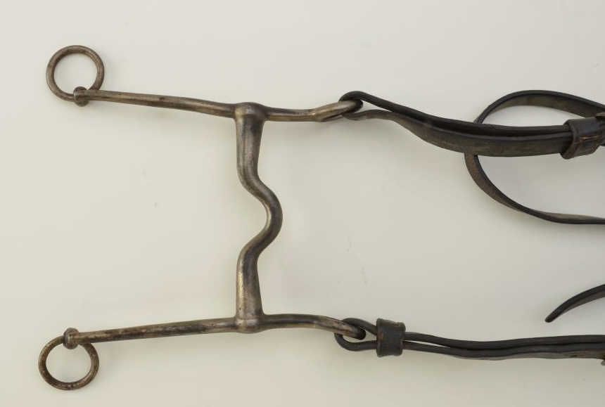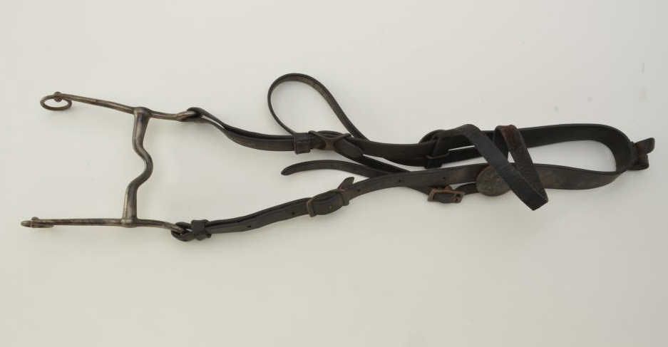 U.S. Army leather horse headstall and bit with bronze U.S. Army insignia rosettes, in overall good condition. Gale Kennedy Historical West. Est.: $100-$200.
