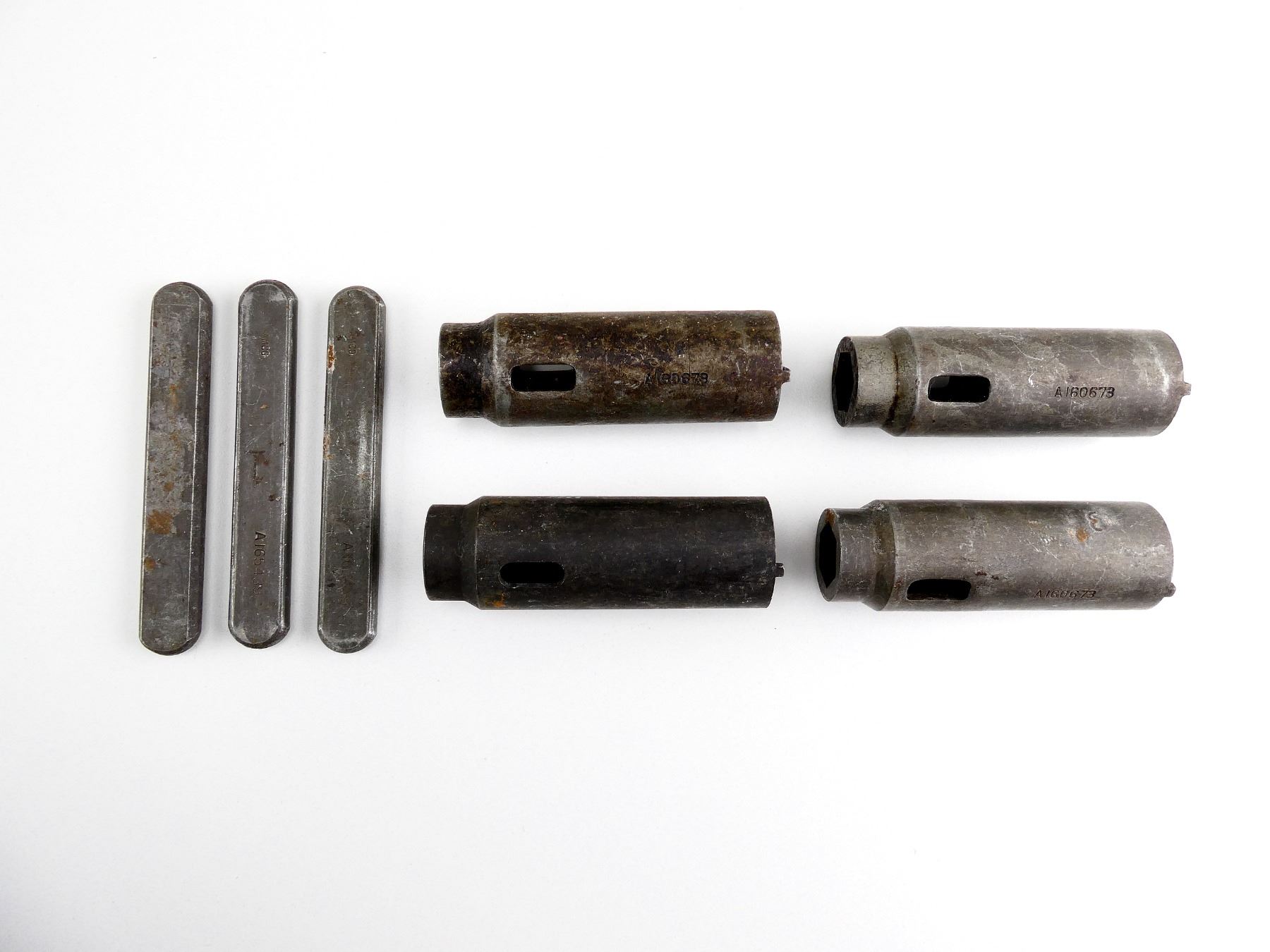 LOT INCLUDES; (4) TOOLS WITH (3) HANDLES, FOR DISASSEMBLY OF TRAVERSE ELEVATION MECHANISM, VARIOUS MARKINGS, TOOL OALS APPROX. 3.5" & HANDLE OALS APPROX. 4". SEE PHOTOS.