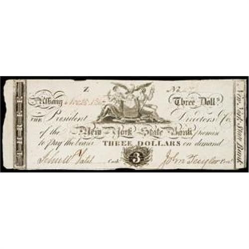 Haxby NY-100 C82. This is the "Z" plate position counterfeit from this extensive series of Albany issued notes. The New York arms are at the top center. Fully issued and hand dated 1814. This example is bright and vivid. A very bold, premium quality note!