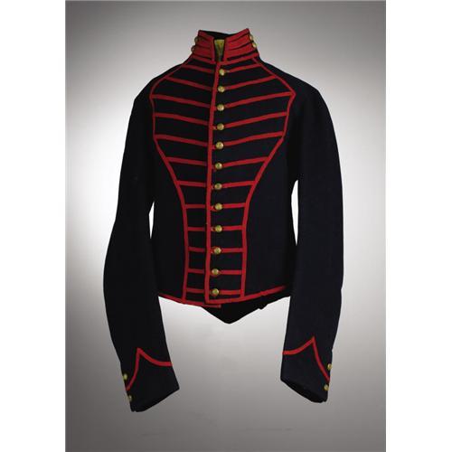 <B>U.S. Buglers "Musician's" Shell Jacket</B></I> with original Schuylkill, New York U.S. Army Arsenal red plaid lining as well as stenciled arsenal markings "L - SA - 9" - two-piece U.S. eagle buttons intact throughout, extensive red piping across chest. A very rare bugler's uniform with a magnificent plaid lining which is rarely encountered.<BR><BR><b>Shipping:</b> Clothing & Costumes (<a target="_blank" href="http://www.heritageauctions.com/common/shipping.php">view shipping information</a>)