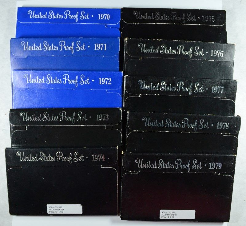 U.S. CLAD PROOF SETS OF THE 1970'S, ( 10 ) SETS IN ORIGINAL PACKAGING