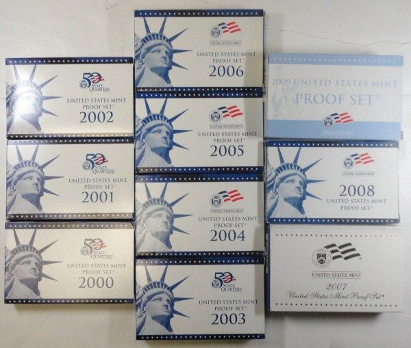 U.S. CLAD PROOF SETS OF THE 2000'S, 2000 THRU 2009, ORIGINAL MINT PACKAGING