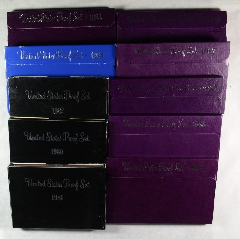 ( 10 ) SETS 1980-1989, SILVERTOWNE AUCTIONS IS RANKED ONE OF THE BEST INTERNET AUCTIONS ESTIMATE, $65.00 TO $75.00