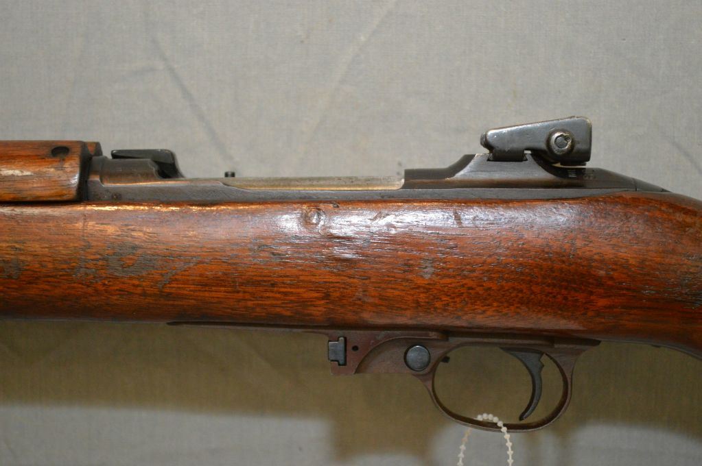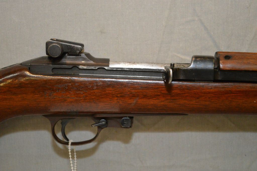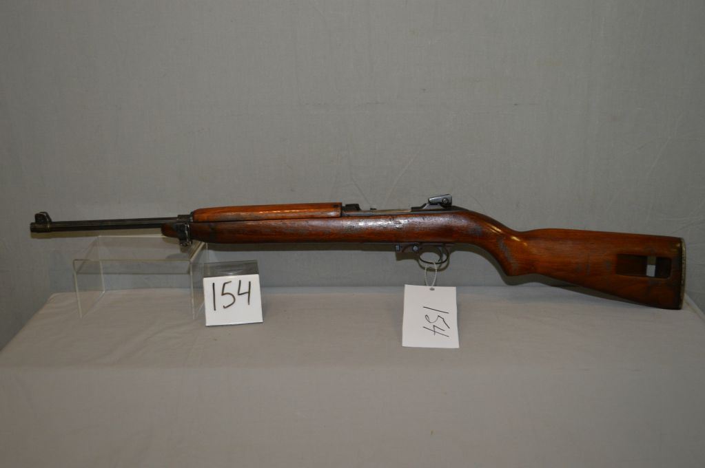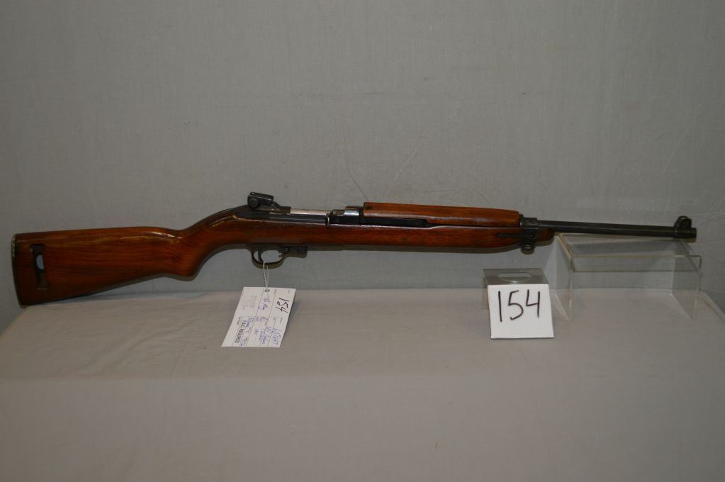 U.S. Carbine ( Inland Manufacturing Division of General Motors ) Model M1 .30 Carbine cal 5 Shot Mag Fed Semi Automatic Carbine w/ 457 mm bbl [ blued finish, barrel sights, good wood w/ metal butt plate, missing the mag , (154) ] Ser # 607647 Restricted as Handgun Cert # tci