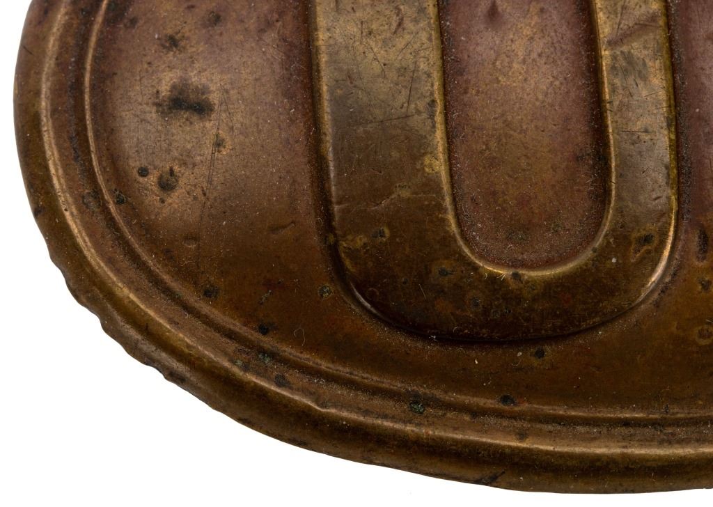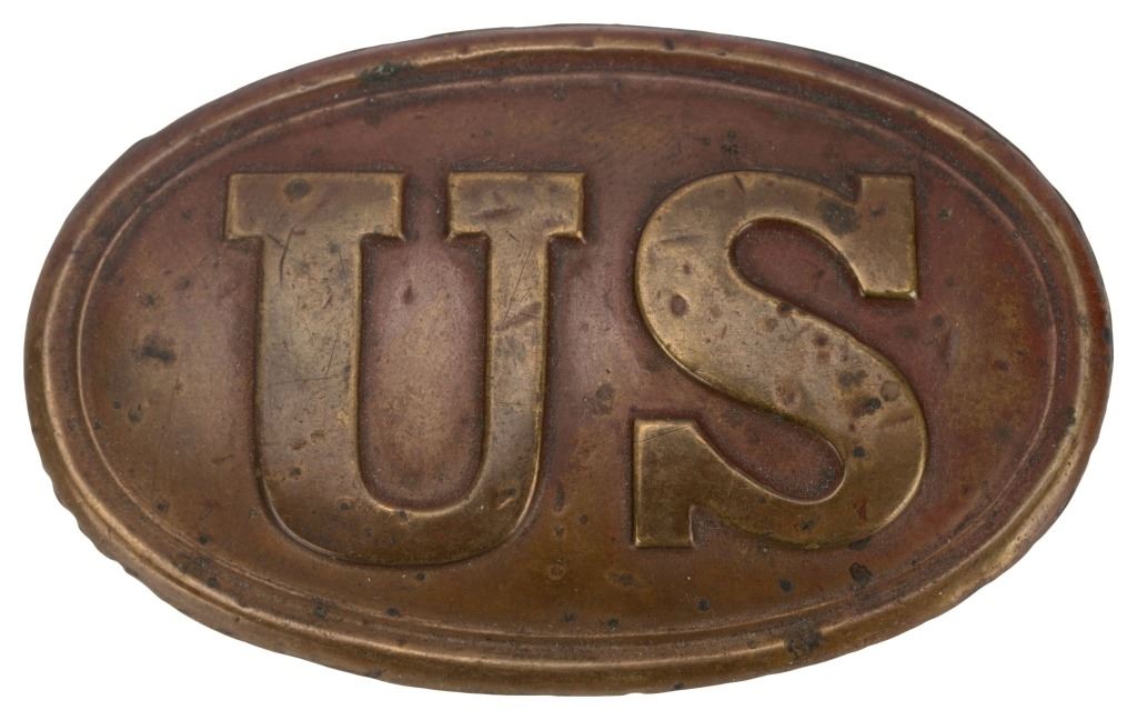 Item/Description: Oval US cartridge box plate. No maker marks. Backing loops intact. (Federal 1839 Pattern, Infantry)