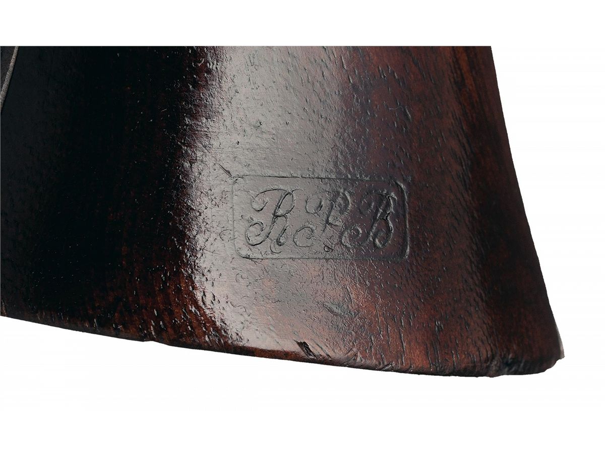This is one of an estimated 5,000 Army Model revolvers manufactured by Rogers & Spencer Co. for a U.S. contract issued in November 1864. Silver cone front and frame groove sights with the top strap stamped "ROGERS & SPENCER/UTICA N-Y" on either side of the sighting groove. Matching numbers on frame, barrel, cylinder, loading lever and butt with the number "2643" on the back of both grips. Small "B" inspection marks are stamped on most of the components. Fitted with smooth walnut grips with a script "RPB" cartouche on the lower left.