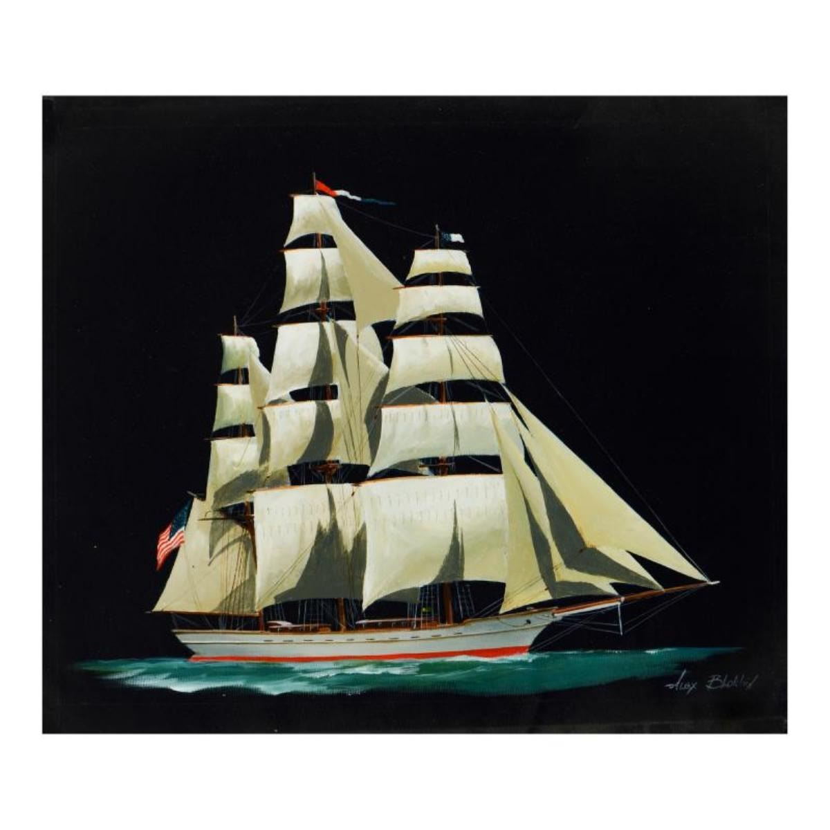 U.S. Clipper by Blokhin Original. "U.S. Clipper" is an original oil painting on canvas by Alex Blokhin, hand signed by the artist. Includes Letter of Authenticity. Measures approx. 21" x 18" (image).