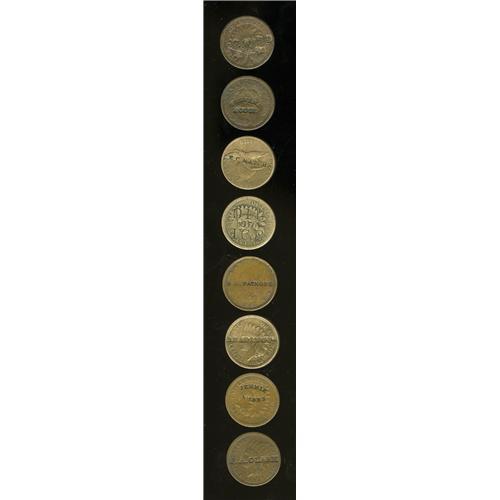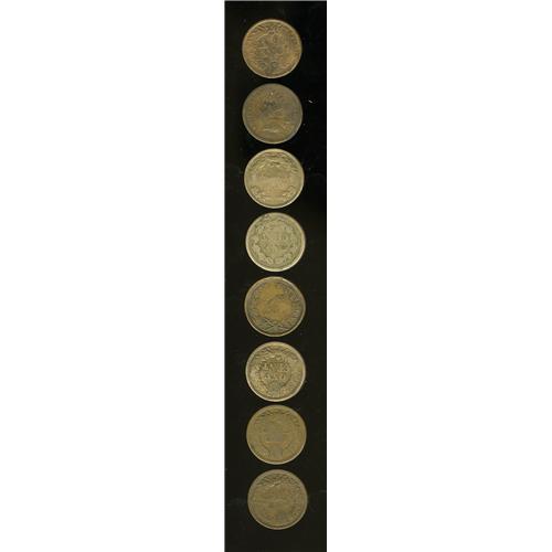 <B>U.S. Coin Counterstamped Group.</B></I> Eight small cents--one Flying Eagle and six Indian cents, plus one Civil War cent token. Some of the pieces are identified by their Rulau numbers: 1858, E.C. Hatch, Rulau MV127; 1859, Oil of Ice, Rulau MV234; 1863, Reading Pa.; 1863 Civil War cent token, H.L. Patnode; 1866, Jennie Hubbs; 1876 V.C. Ward, with arrows, heart, and stars; 1880, Stevens House; and 1884, J.A. Clark. This interesting lot will interest counterstamp researchers. The market value is about $125-$225.<BR><BR><b>Shipping:</b> Coins & Currency (<a target="_blank" href="http://www.heritageauctions.com/common/shipping.php">view shipping information</a>)