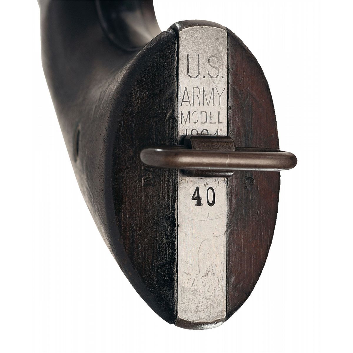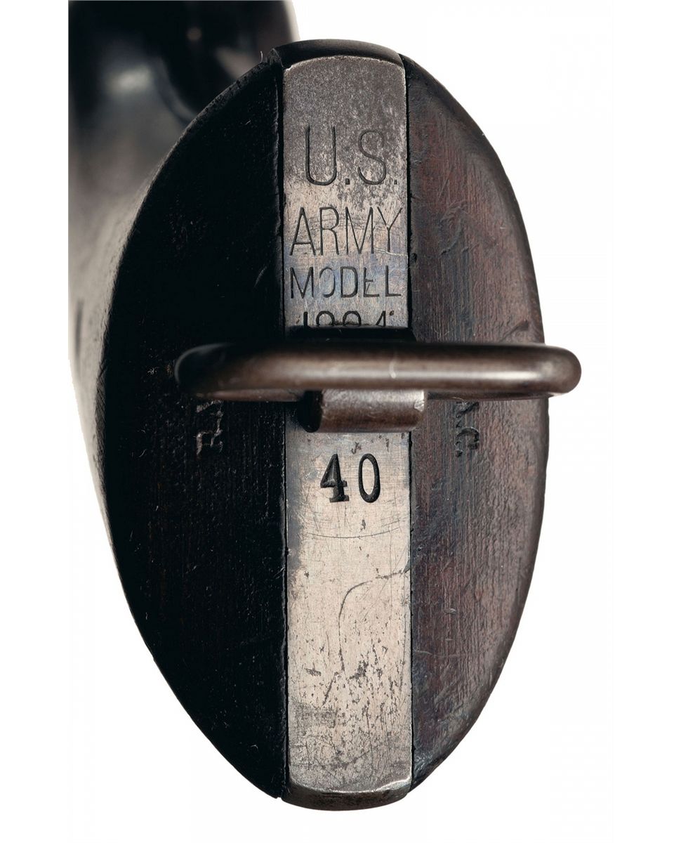 Produced circa 1894-1895. Fixed sights, with the 2-line address, "COLT.D.A. 38" and "R.A.C" on the barrel, "R.A.C." repeated on the frame, cylinder and grips, and "U.S./ARMY/MODEL/1894/No/40" on the butt. Lanyard has been added by arsenal at time of rebuild. Matching numbers on the frame, crane, cylinder catch and butt. Smooth walnut grip panels with "RAC" on both butts.