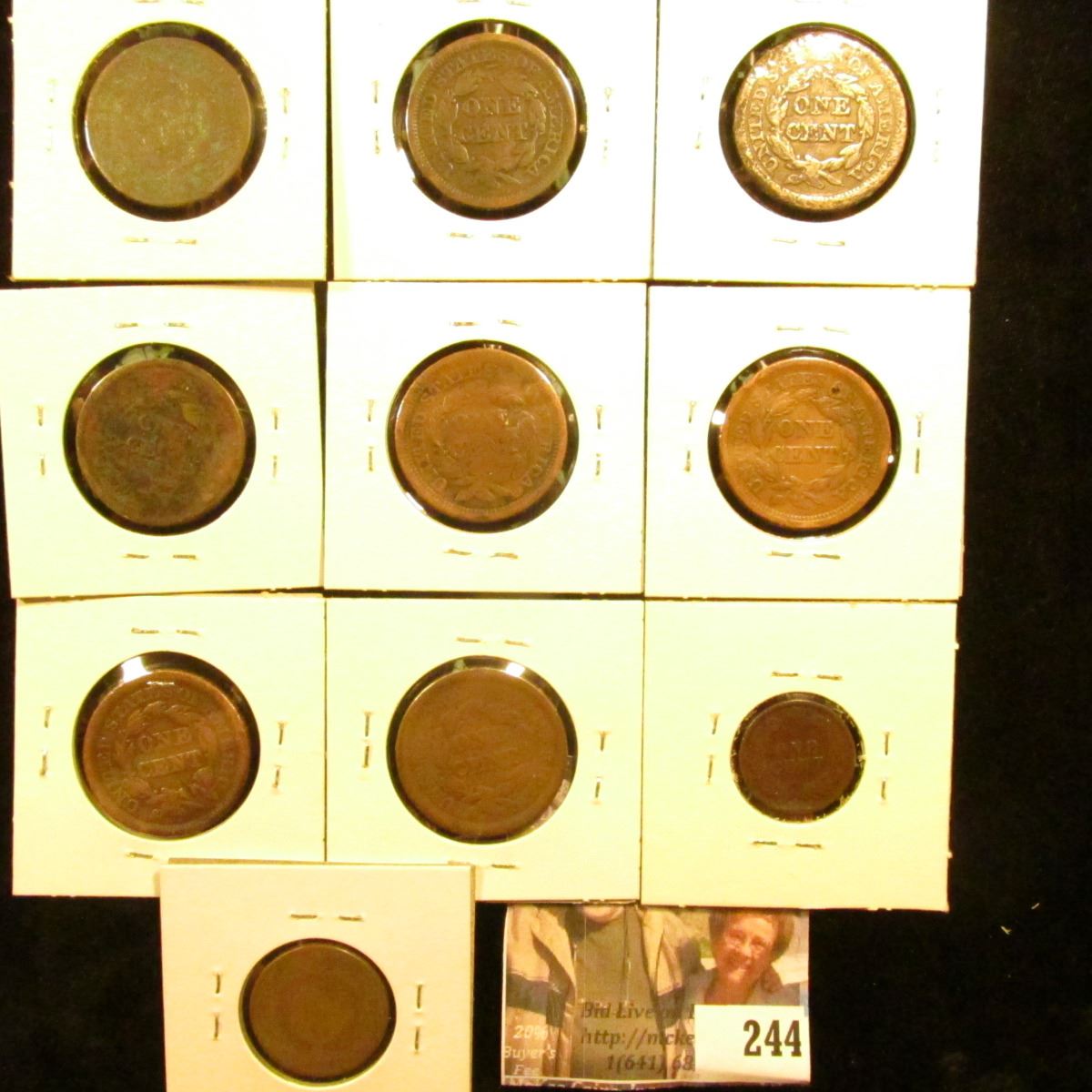 U.S. Cull Lot: (8) Large Cents, Indian Cent, and Two Cent Piece.