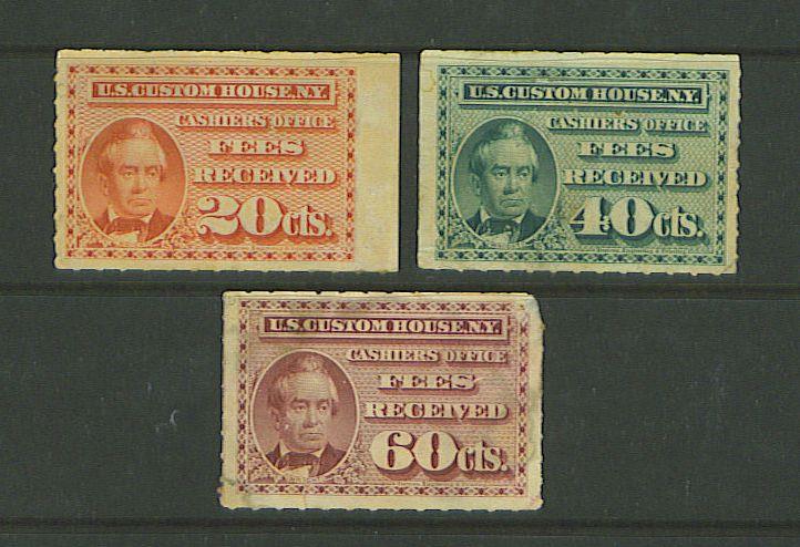 Useful lot of three different rarely seen unused U.S. customs stamps with F-VF centering. Defects are present as usual in the form of thins. 2008 SCV.$425