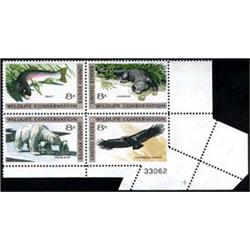 U.S. U.S. Errors, Freaks and Oddities 1971, 8¢ Wildlife Conservation Issue Terrific foldover variety block of 4 with plate number. OG. NH. VF. Scott No. 1427-30 Estimate US$200-300