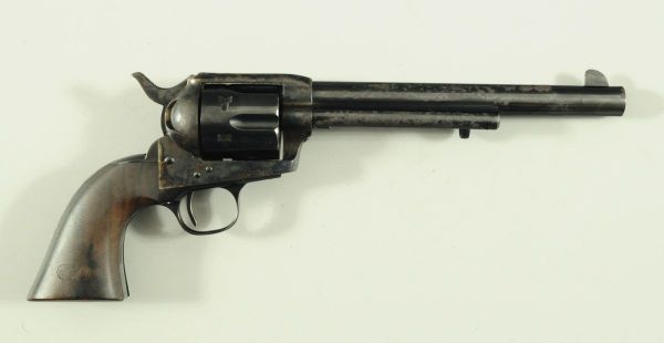 7 1/2'' Barrel, wood grip, blue finish. Serial # - 47160, surface rust & finish loss.