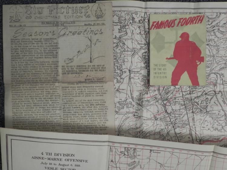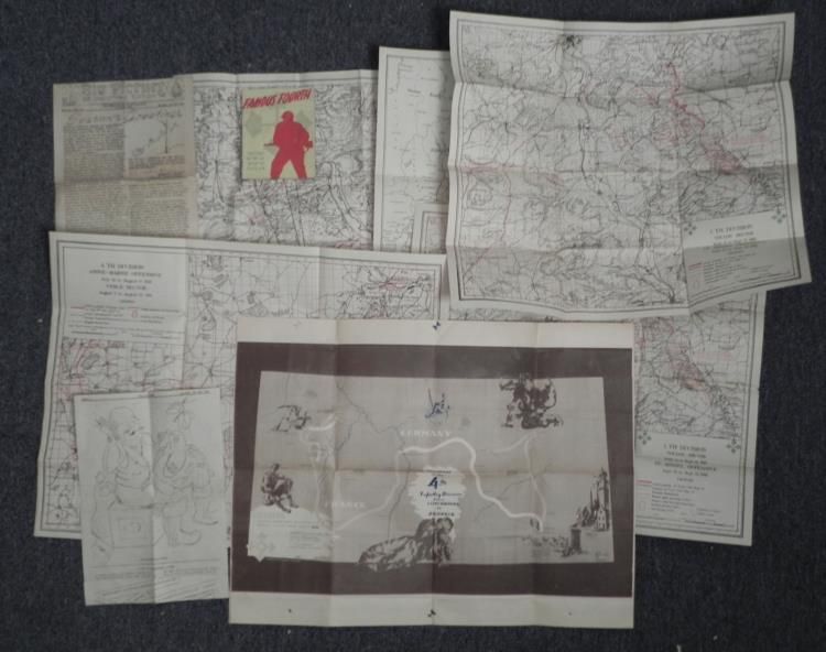 U.S. FIGHTING 4TH DIVISION WWI & WWII ORIG WAR MAPS-HISTORY, ETC OUTSTANDING WWI AND WWII LOT FOR THE 4TH DIV
