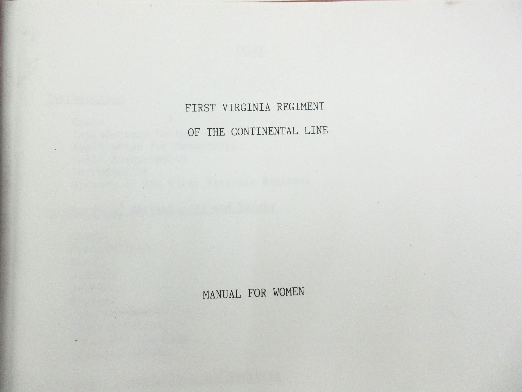 "U.S. FIRST VIRGINA REGIMENT OF THE CONTINENTAL LINE" TRAINING MANUAL LOT