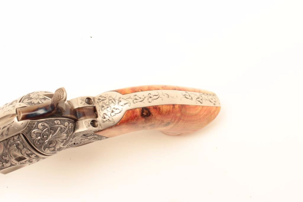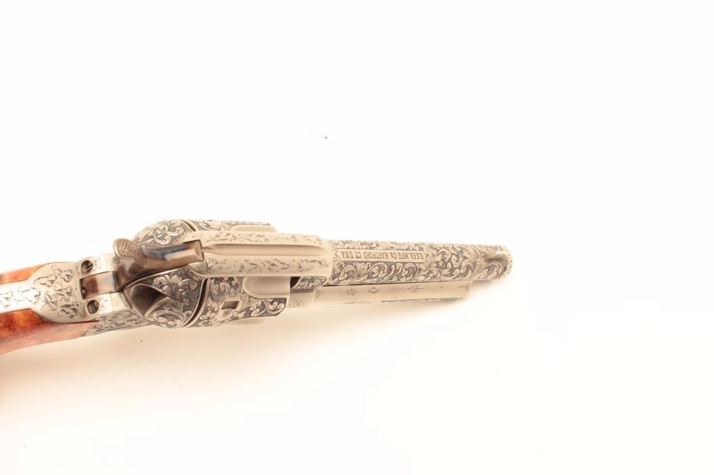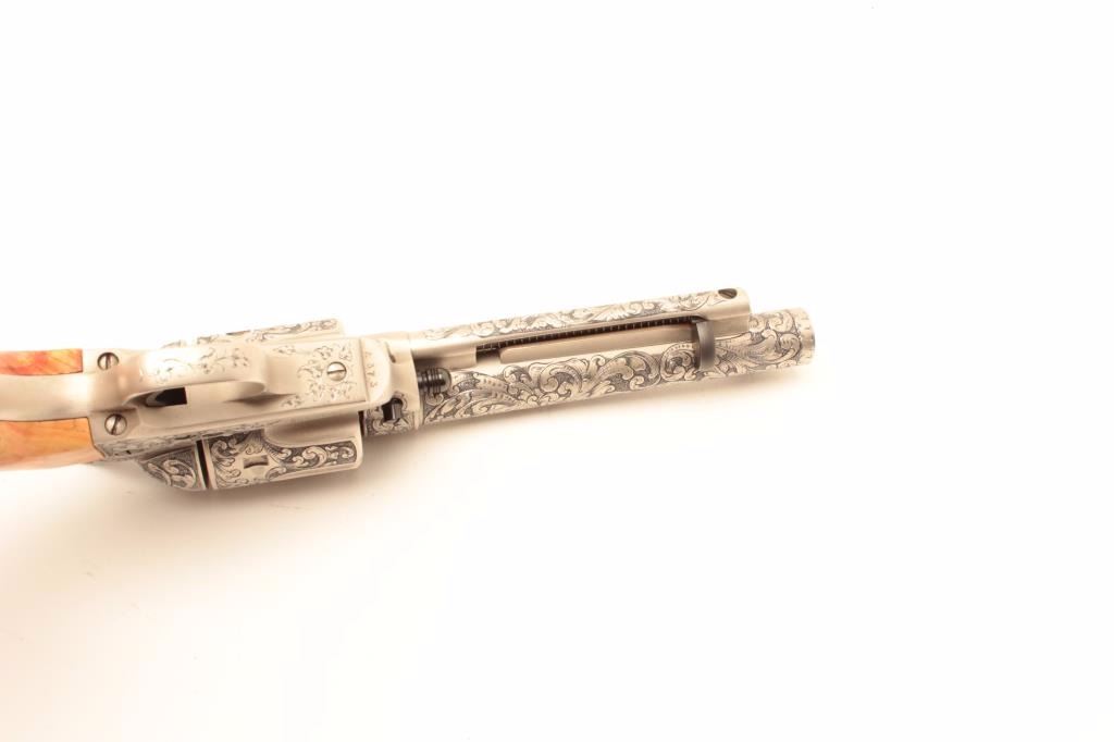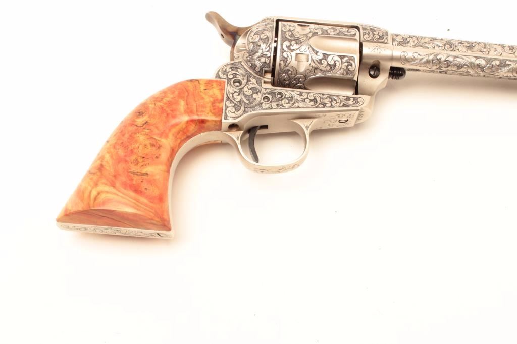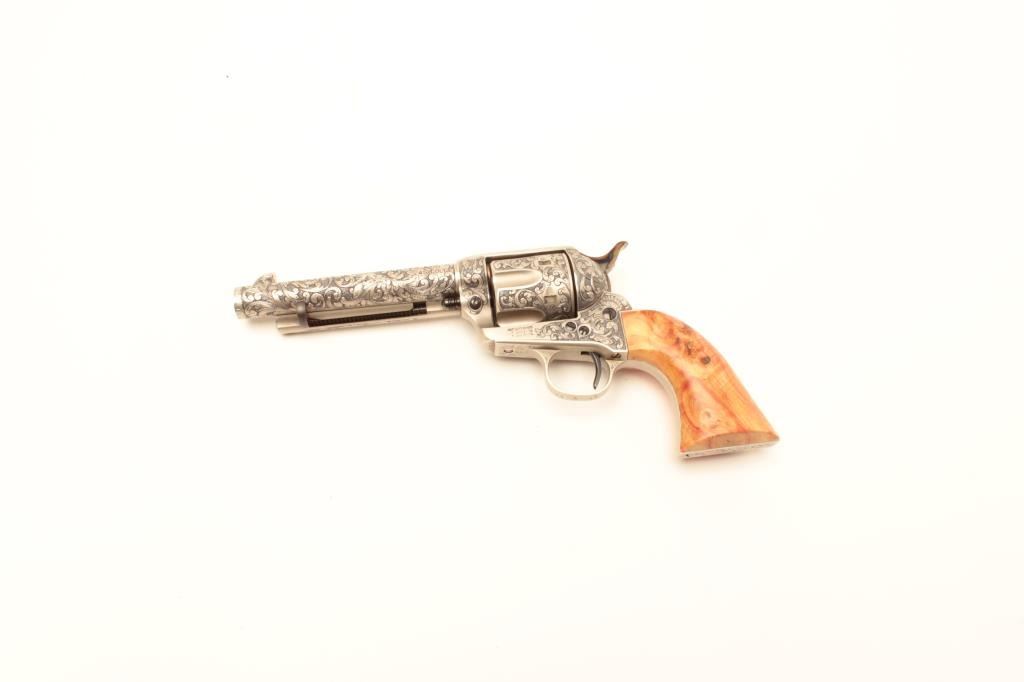 U.S. Firearms Mfg. Co. copy of a Colt SAA revolver, expertly and extensively engraved by Aarron Pursley of Big Sandy, MT., .45 caliber, 5.5” barrel, exotic wood grips, S/N A373, in overall excellent condition showinglittle use or handling. (Modern/No PPT). Est.: $600-$1,200.