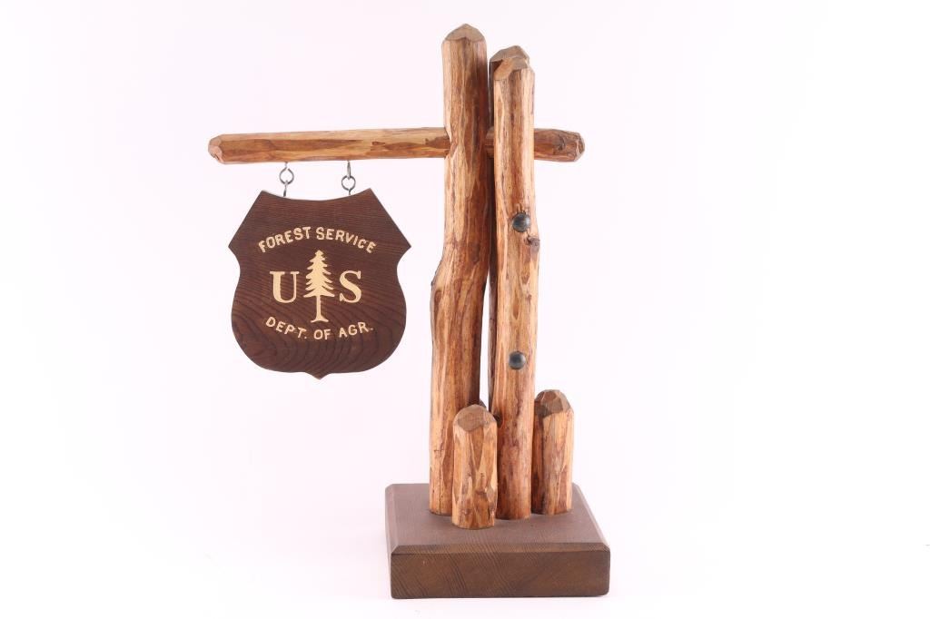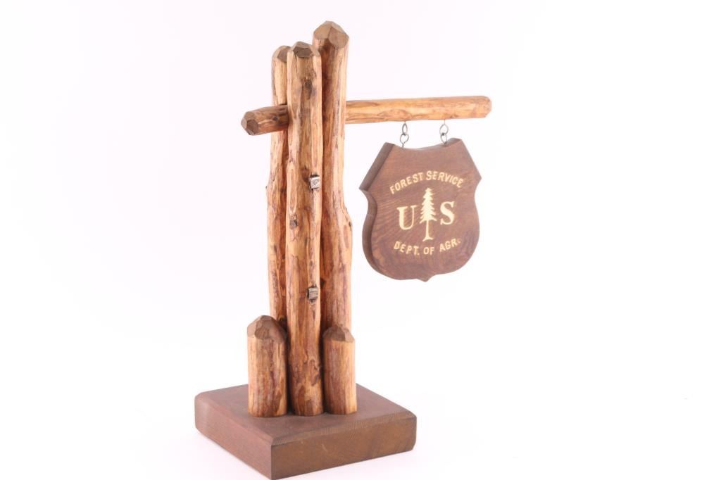 Joe Russo, formerly Yavapai and Prescott High School Principal, made three in the early 1960's. One for Albg district supervisor's office, one for Prescott National Forest district ranger's office, and this one was given to consignor's husband. Measures 12" wide by 18" tall by 7" tall.