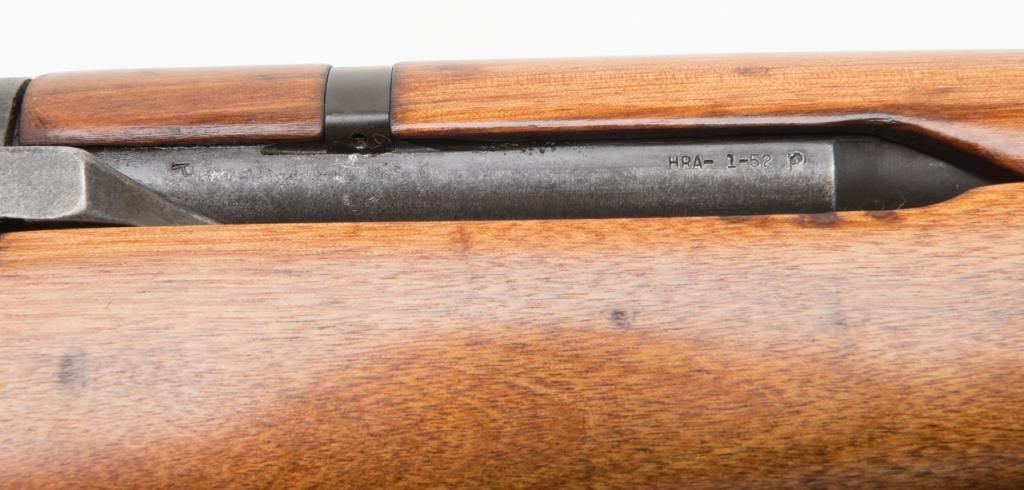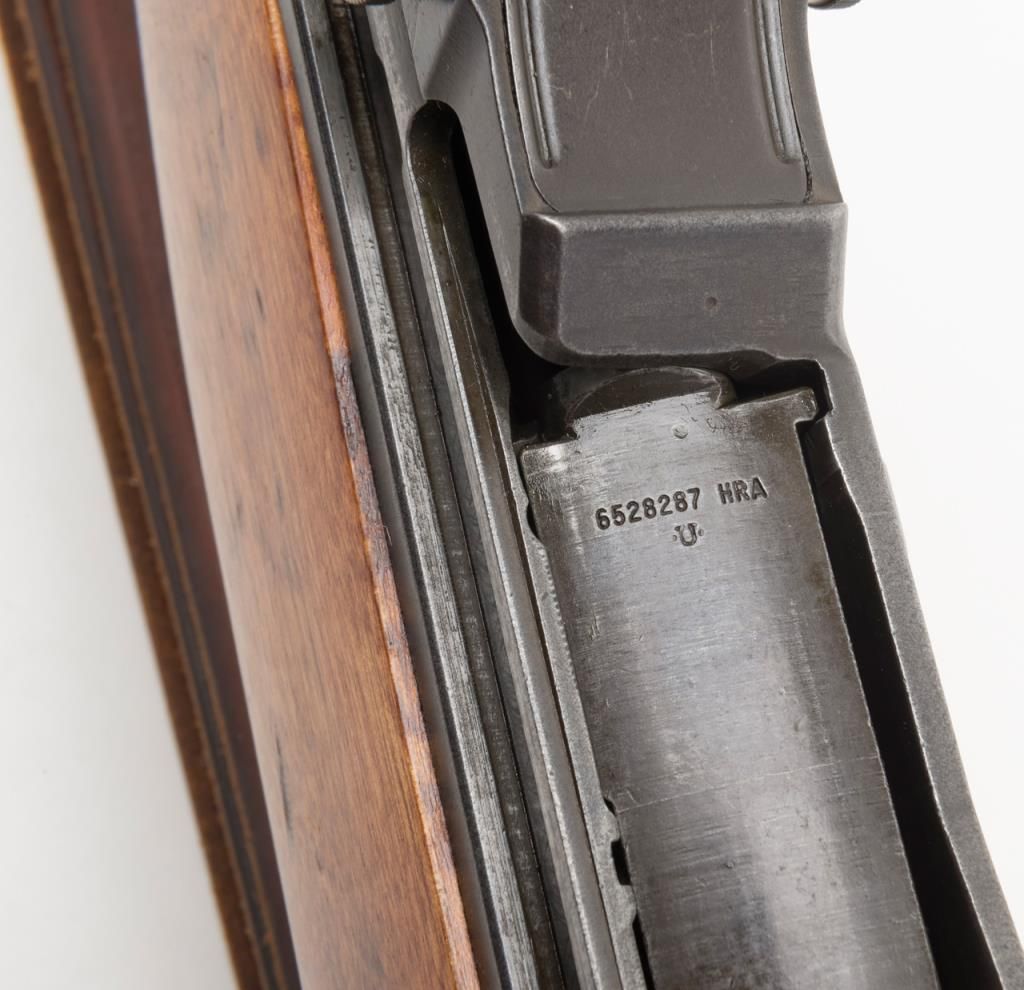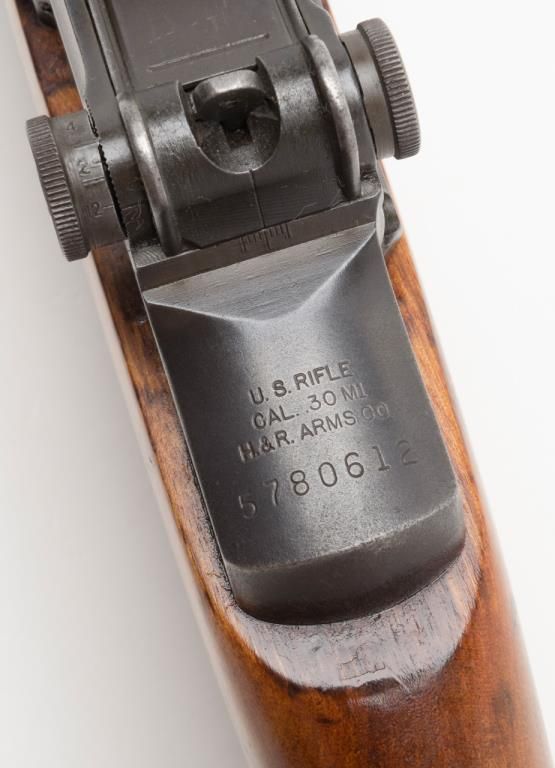 U.S. Garand M1 semi-auto rifle by H&R Arms Co., .30 cal., 24” HRA barrel dated 1-52, import-marked, military finish, wood stock, #5780612 in overall good to very good condition showing some remaining military finish, good bore, crisp action and markings, good wood as re-finished, no visible proofs or inspector cartouches, leather sling present. (C&R/PPT). Est.: $500-$1,000.