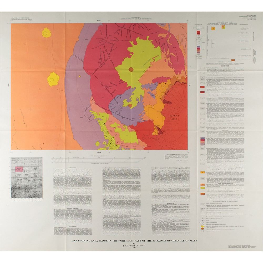 Lava Flows in the Northeast Part of the Amazonis Quadrangle of Mars by D. H. Scott and K. L. Tanaka, 1:2,000,000 scale, published in 1981 (Map I-1279)