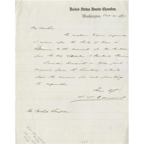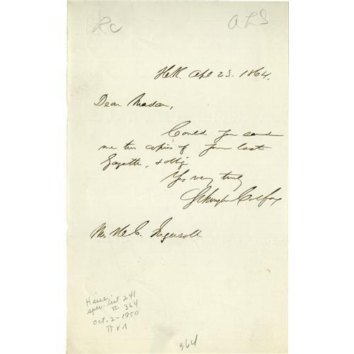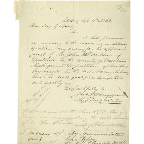 <B>Ulysses S. Grant Cabinet Members Autograph Collection.</B></I> All items are in fine or better condition unless noted. Included in this lot are: <BR><BR>Schuyler Colfax. Vice President. Autograph Letter Signed. <BR><BR>Henry Wilson. Vice President. Autograph Letter Signed. <BR><BR>Zechariah Chandler. Secretary of the Interior. Autograph Endorsement Signed. <BR><BR>James D. Cameron. Secretary of War. Autograph Letter Signed. <BR><BR>Lot M. Morill. Secretary of the Treasury. Autograph Letter Signed (good condition). From the Henry E. Luhrs Collection. Accompanied by LOA from PSA/DNA.