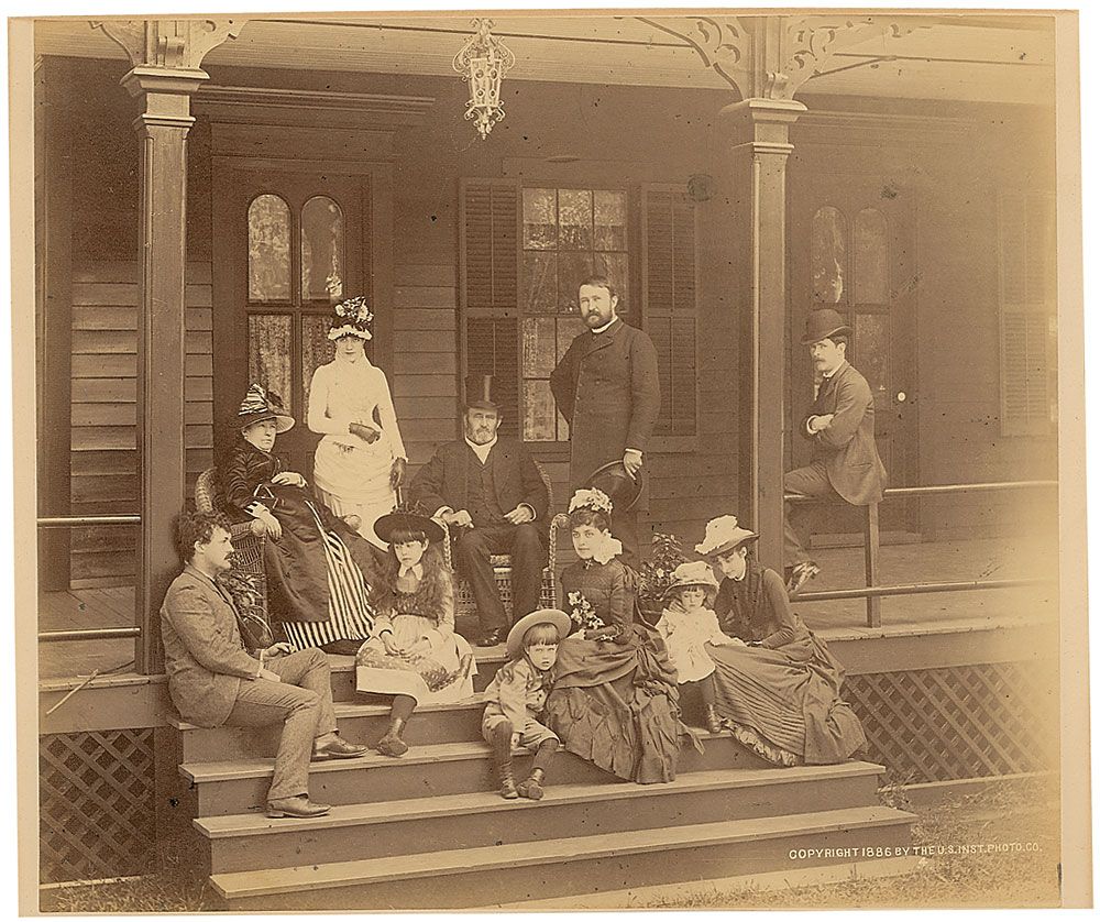 Unsigned original 11.25 x 9.75 albumen photo affixed to a slightly larger mount, featuring Grant and his family on the front porch of his cottage on Mount McGregor in New York. Photo was originally taken in June 1885, and bears an inherent copyright notice to the lower right, “Copyright 1886 by the U. S. Inst. Photo Co.” Some toning to right border, light scattered spotting to image, and lightly trimmed edges to mount, otherwise fine condition.