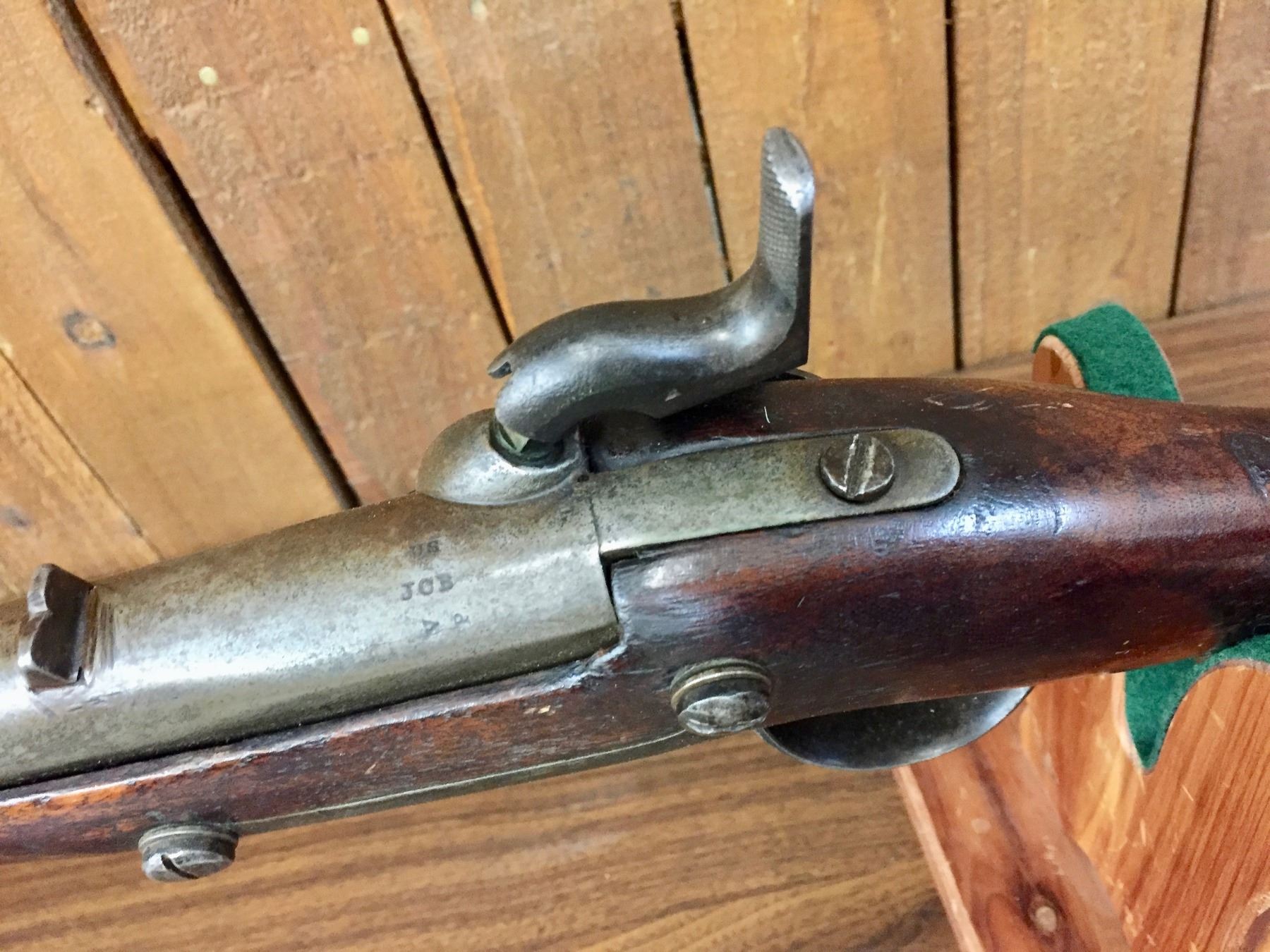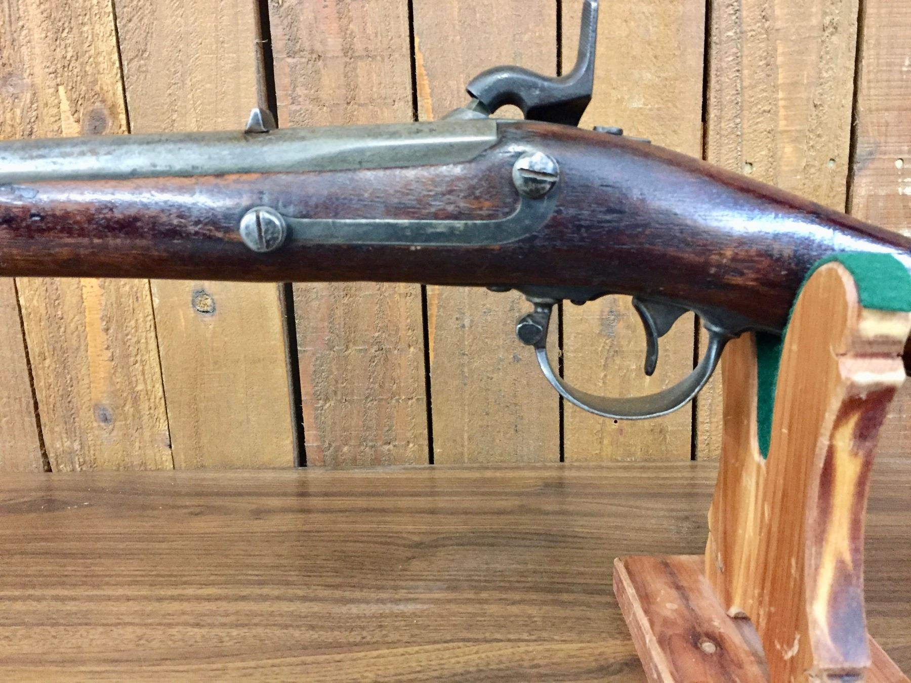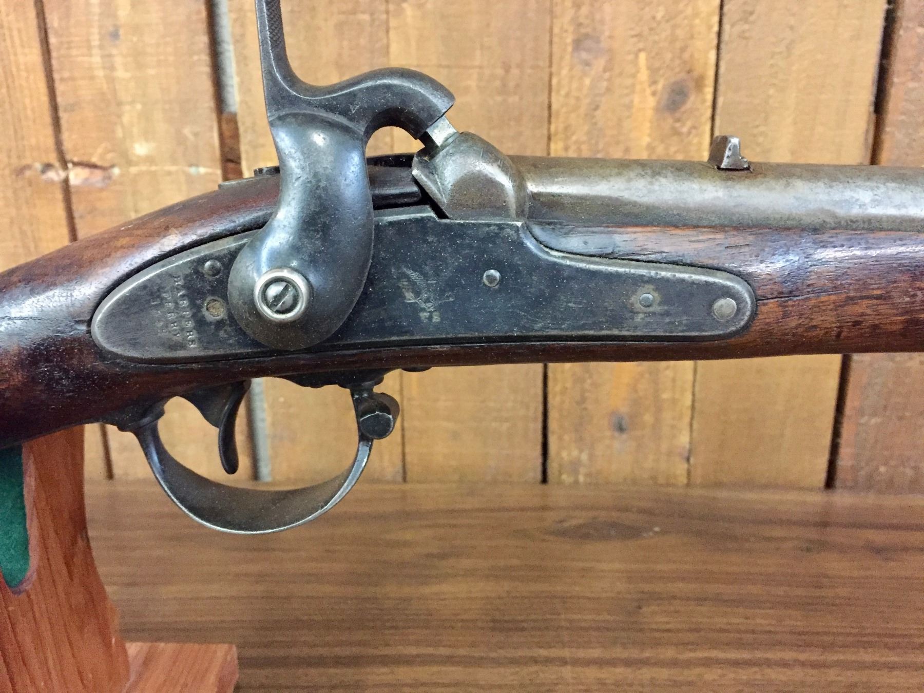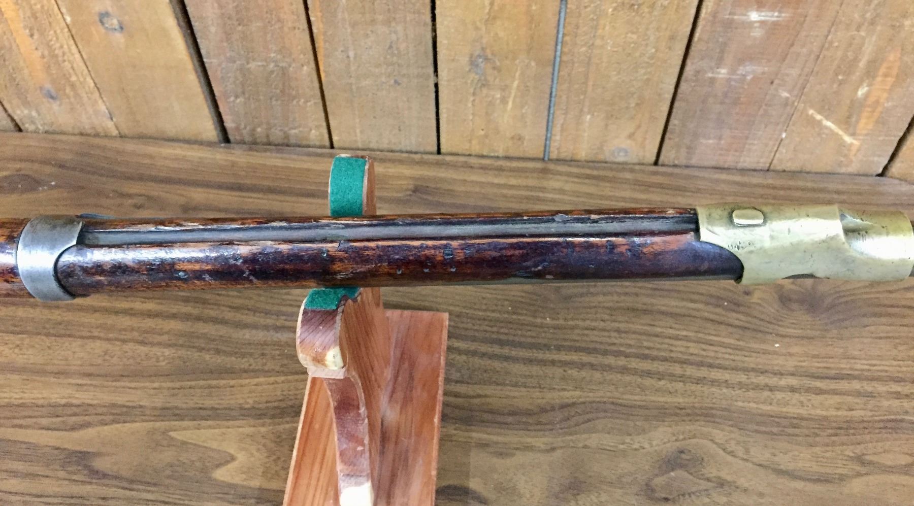 Description: For your bidding pleasure is this antique, percussion cap, .69 cal. musket/rifle. It was manufactured by Harpers Ferry and is dated 1848. It was cut down to a 33” barrel. The butt stock has a nicely hand carved scene of an Eagle and a floral pattern on one side. Previous owner said he has shot it! We are selling this as an antique / curio item and not warranted safe to shoot. No FFL paperwork required on this antique, black powder rifle which was made pre-1898. We will only ship this item to the United States and only where it is legal to do so. Please know your local/state laws before buying. Maker: Marked, Harpers Ferry. Approx. Age: 1848. Size: Barrel measures approx. 33” with an overall length of 48 1/2”. Condition: Fair for its age, wear expected. Couple of small cracks in the wood, which appears to be original. Barrel cut down as mentioned above. Please look closely at the pictures - they are an important part of our description. Shipping: There will be a $15 handling / packaging fee for shipping this lot. The actual cost of postage will be added on top of that.
