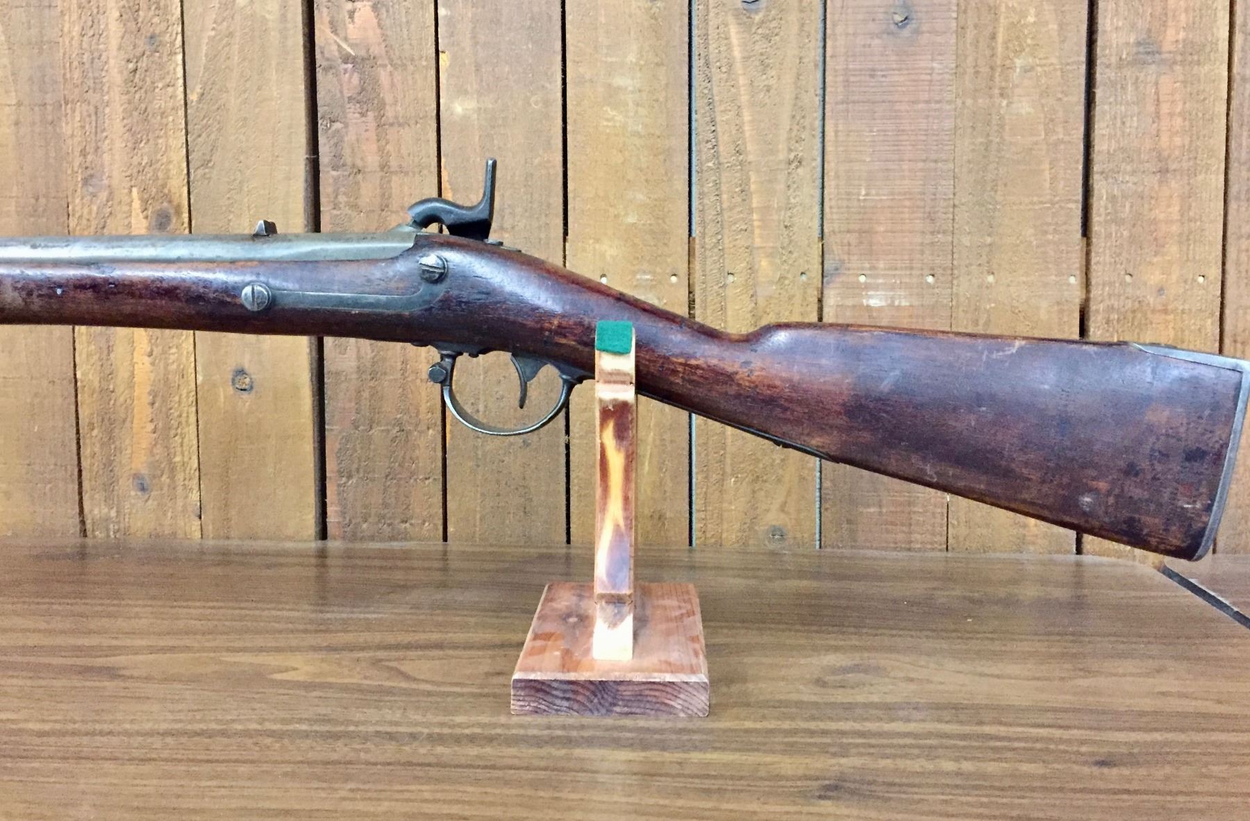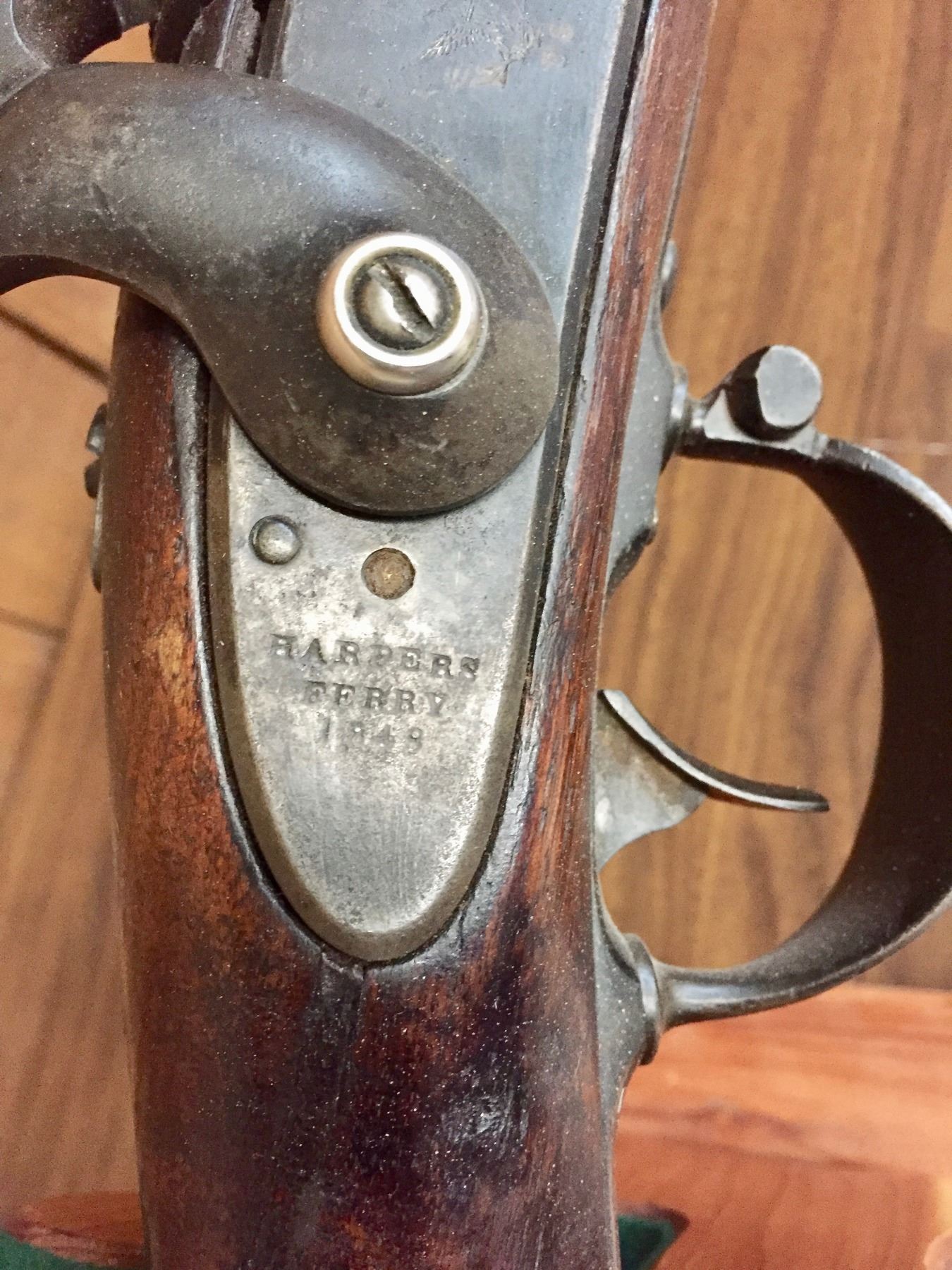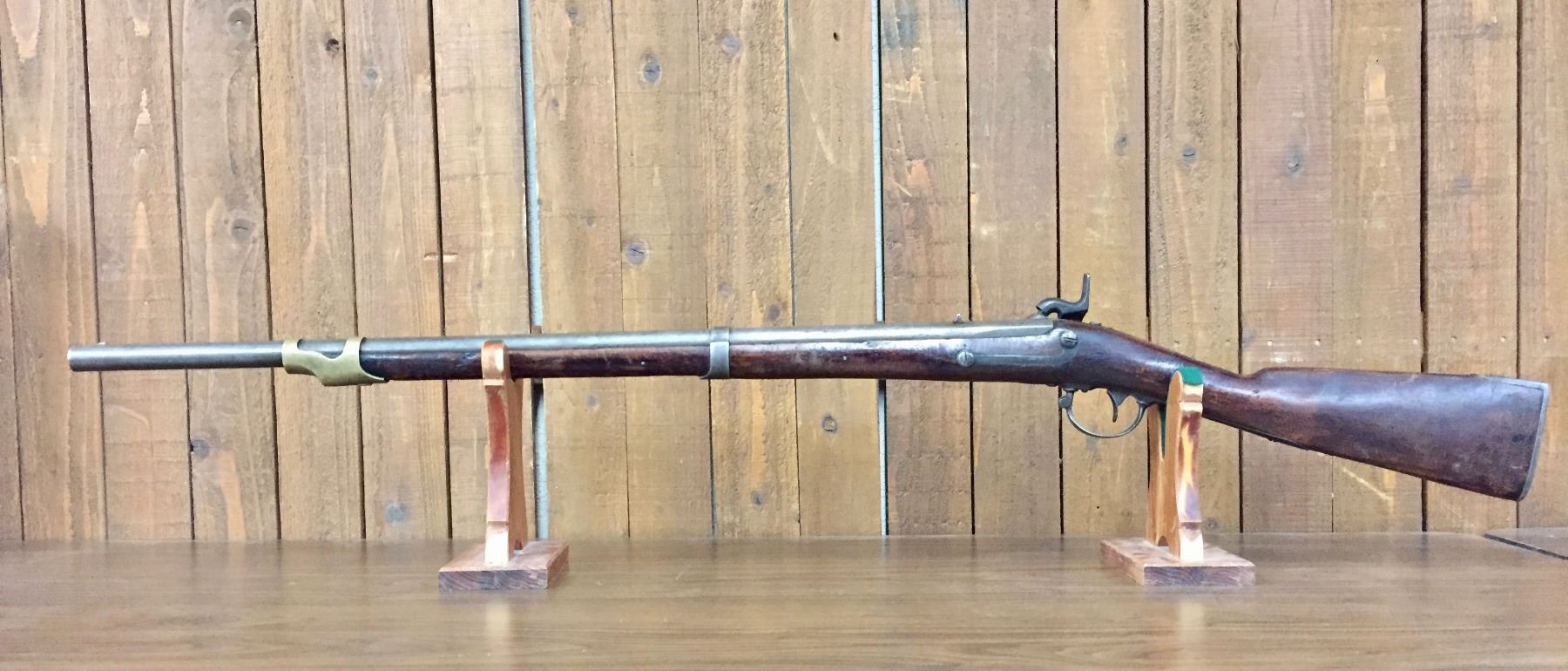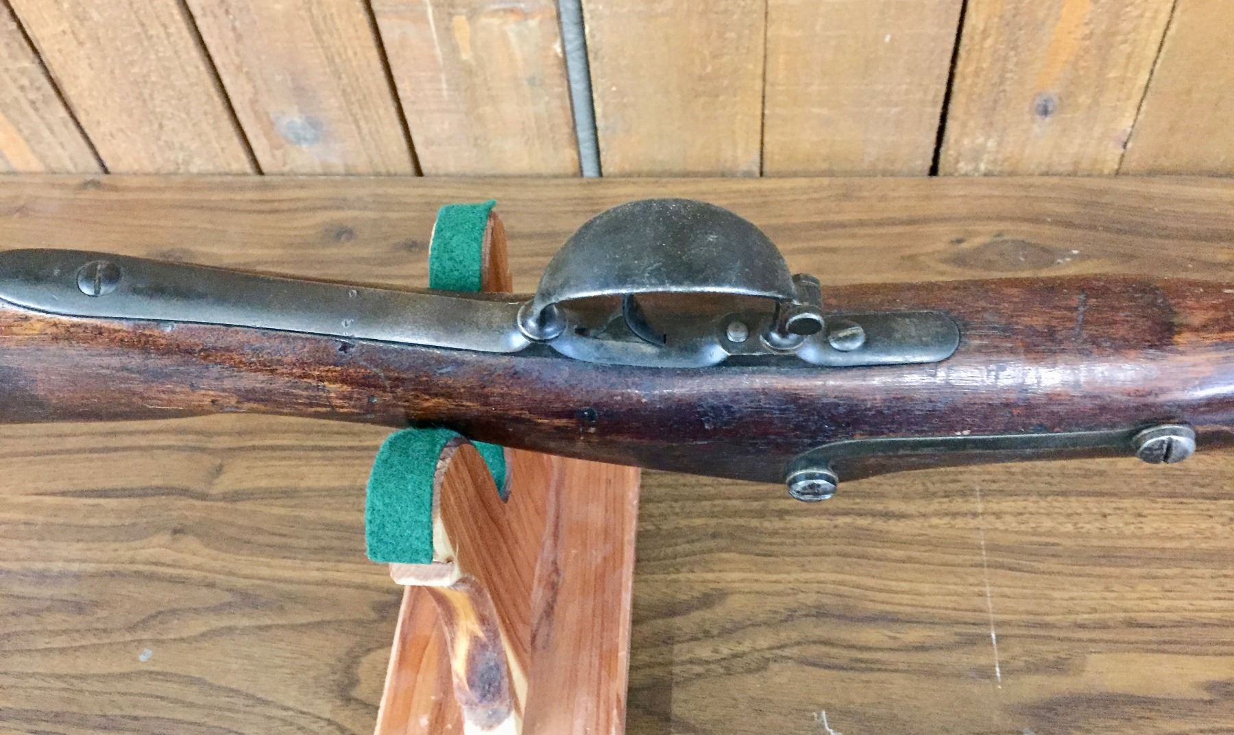 Description: For your bidding pleasure is this antique, percussion cap, .69 cal. musket/rifle. It was manufactured by Harpers Ferry and is dated 1848. It was cut down to a 33” barrel. The butt stock has a nicely hand carved scene of an Eagle and a floral pattern on one side. Previous owner said he has shot it! We are selling this as an antique / curio item and not warranted safe to shoot. No FFL paperwork required on this antique, black powder rifle which was made pre-1898. We will only ship this item to the United States and only where it is legal to do so. Please know your local/state laws before buying. Maker: Marked, Harpers Ferry. Approx. Age: 1848. Size: Barrel measures approx. 33” with an overall length of 48 1/2”. Condition: Fair for its age, wear expected. Couple of small cracks in the wood, which appears to be original. Barrel cut down as mentioned above. Please look closely at the pictures - they are an important part of our description. Shipping: There will be a $15 handling / packaging fee for shipping this lot. The actual cost of postage will be added on top of that.