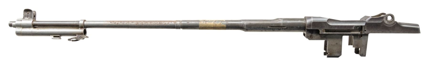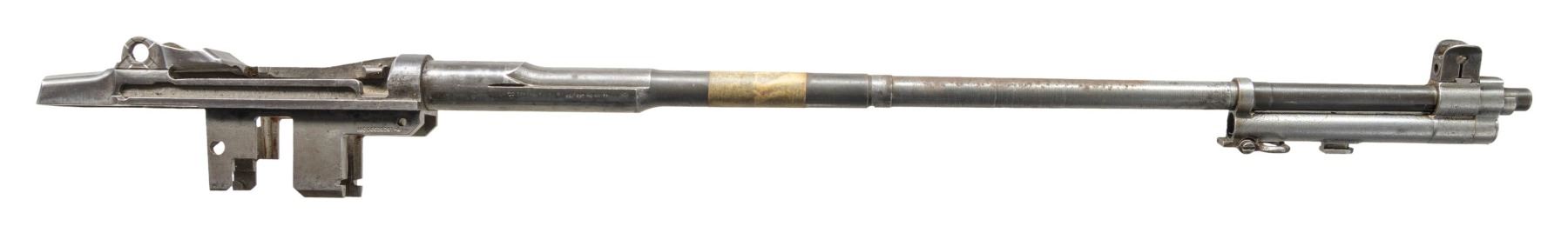 WITH BARREL AND PARTS. Cal. 30-06. S# 4460708. Bbl. 24". Barrel markings on the right side include "LMR 1 53". Import marked. Throat gauges 3.0. Muzzle gauges 1.0. Receiver has standard markings at heel & "IHC" marking at right forward end. Receiver contains no additional parts. Gas cyl., front sight, high hump gas cyl. lock & cross slot gas cyl. lock screw are present on barrel. CONDITION: worn receiver has turned overall gray & patina w/ scattered spots of light oxidation & fine pitting. Bore has strong lands w/ frosted grooves. (25-4409/RW). MODERN. $200-300.