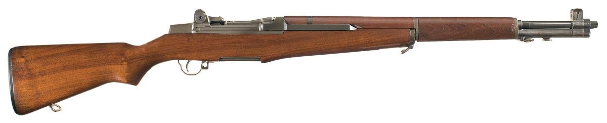 Produced by International Harvester using a receiver supplied by Springfield Armory, as is proper for an early production I.H. rifle (a rare and important variation of an IH Corp M1 Garand rifle). Blade and adjustable peep sights with "IHC DRC" marked windage drum. International Harvester markings on the rear of the receiver, with drawing number "IHCD6528291-A", barrel marked "LMR D6535448 2 53 A8 P M", and International Harvester bolt, trigger housing, hammer, safety, operating rod and gas tube plug. Fitted with a Springfield National Match stock, numbered "7921" on the inside, "P" stamp on the grip, Defense Department stamp on the left side and checkered buttplate. According to the consignor this stock was provided by the Civilian Marksmanship Program as a replacement for one broken in shipping. With CMP shipping box and certificate.