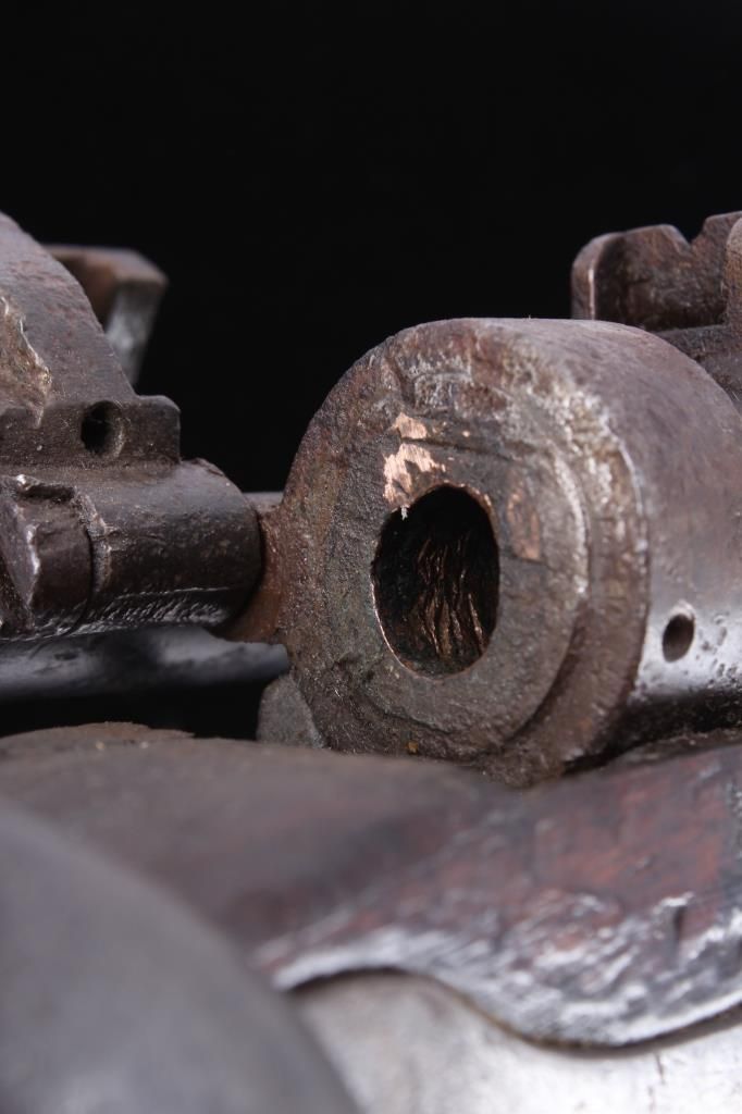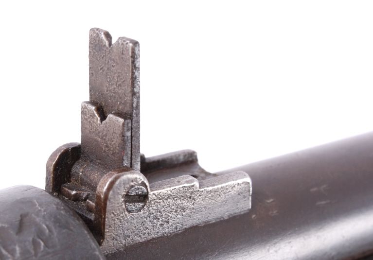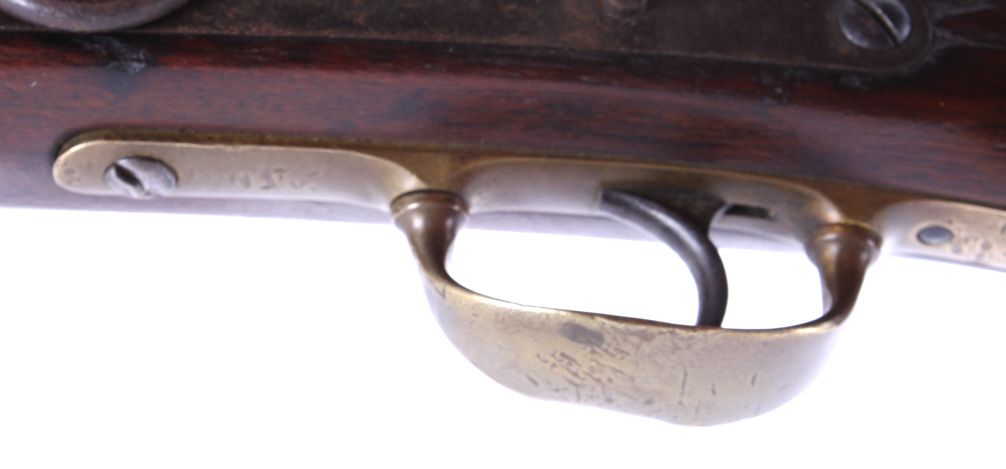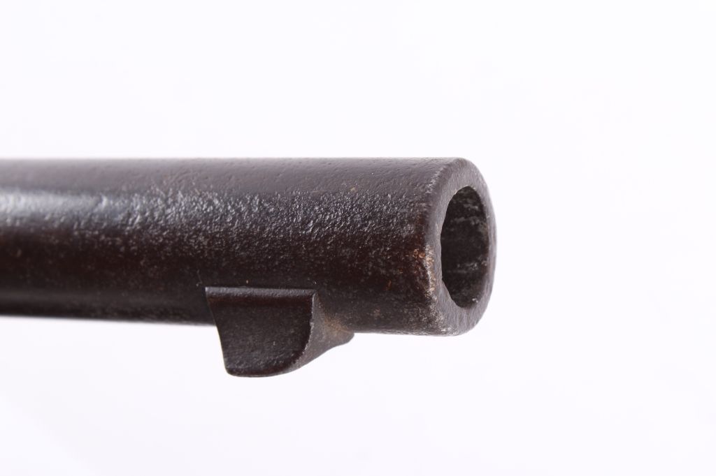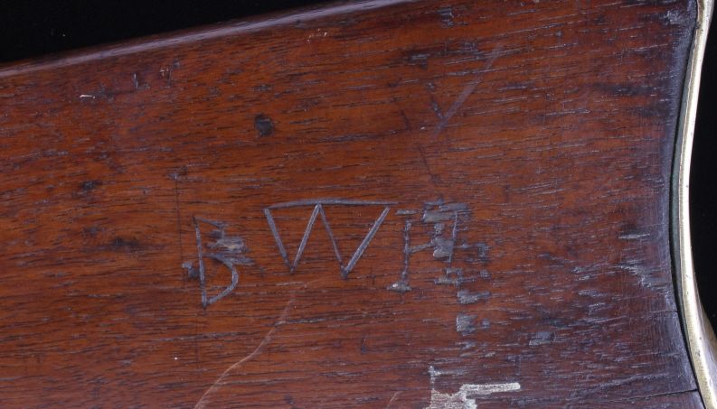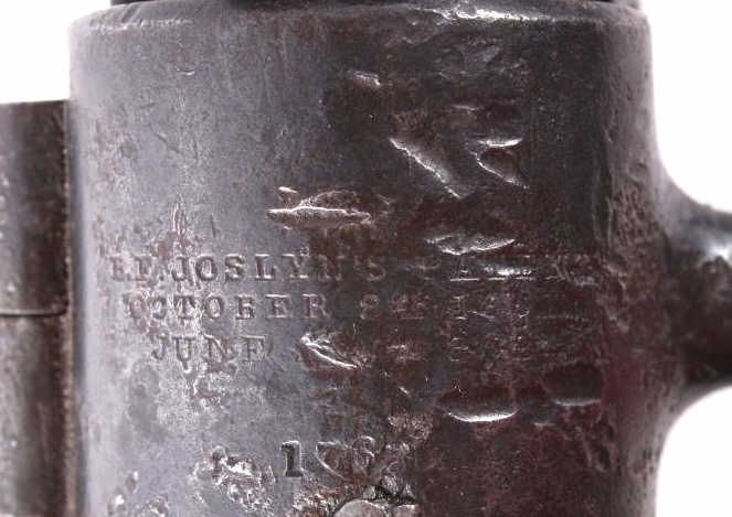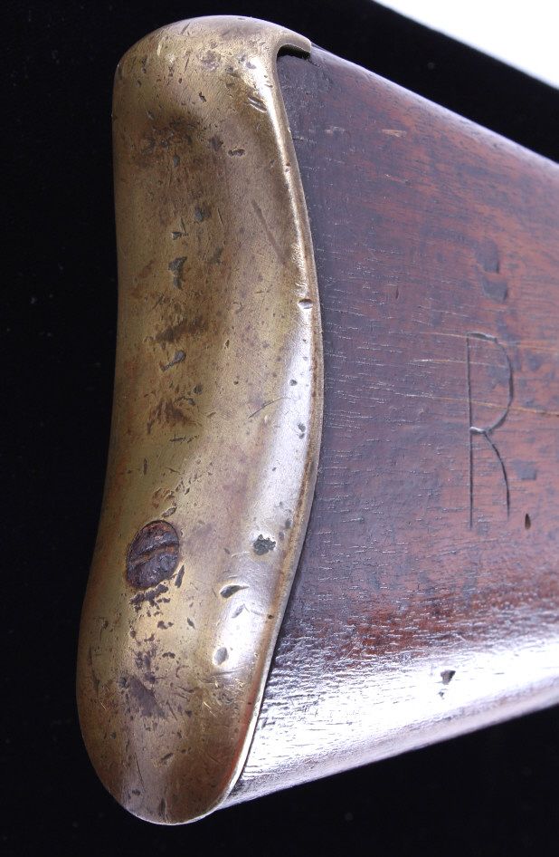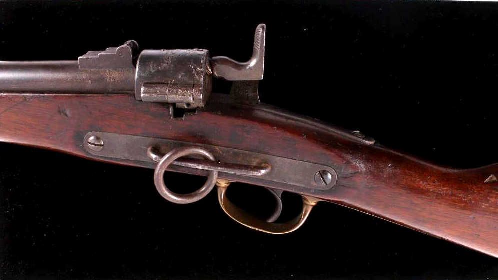 This is a Joslyn Fire Arms Co Stonington Conn. breech loading Saddle Ring Carbine. The piece is a U.S. Model 1862 from the Civil War era. The early firearm has a rifled barrel and percussion action with breech single shot load. The side plate is clearly marked and the top of the breech is also marked Joslyn, but does show wear. The hammer and breech load both work and the carbine has a 20" smooth barrel, with wood stock, and brass trigger guard and butt plate. Side of the stock is carved, "RC" on one side and "BWH" on the other. RARE early Americana firearm. Exact caliber is believed to be .52 (breech opening is 6/16-7/16 opening and barrel end has a 9/16" opening) Has three tip up sights.
