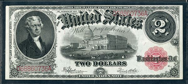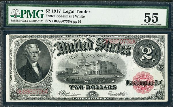 Washington, D.C., $2, Speelman | White signatures, S/N D68860736A pp H, PMG graded About Uncirculated 55.