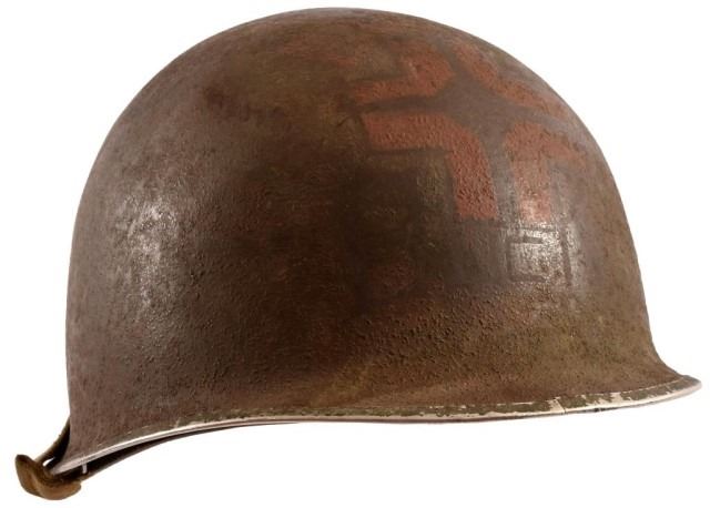 U.S. M-1 Helmet painted "BUCK" along the front, along with a red cross