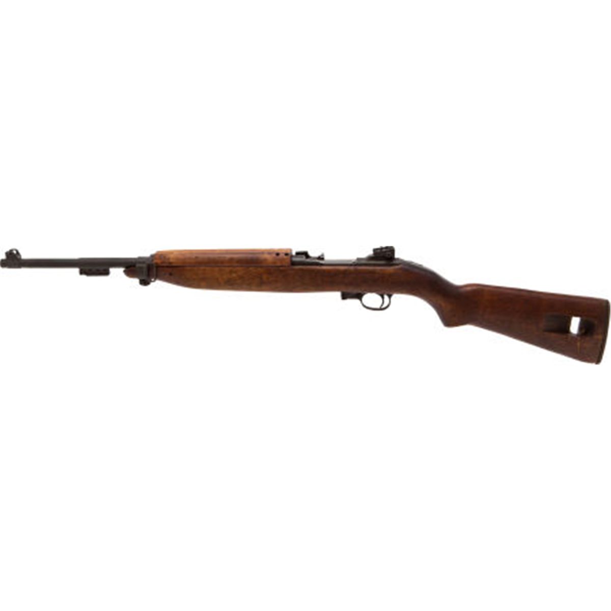 U.S. M1 Carbine by Inland. Serial No. 22124, .30 caliber, 18-inch barrel with standard military sights. Underwood barrel dated 9-43. Bayonet lug. Parkerized finish. Hardwood stock.Condition: Fair. Light age wear and patina to metal surfaces. Hand guard appears sanded and mis-matched to rest of wood which has moderate age wear, patina and soiling. Cracks in stock between oiler cutout and buttplate. Scrapes to wood where cartouche would have been. Bright bore with light wear.NRA FIREARMS FOR FREEDOM PROGRAM