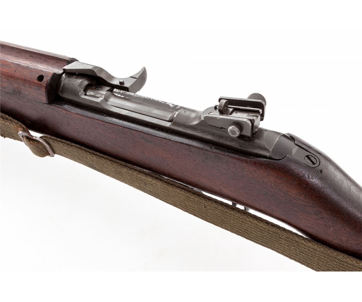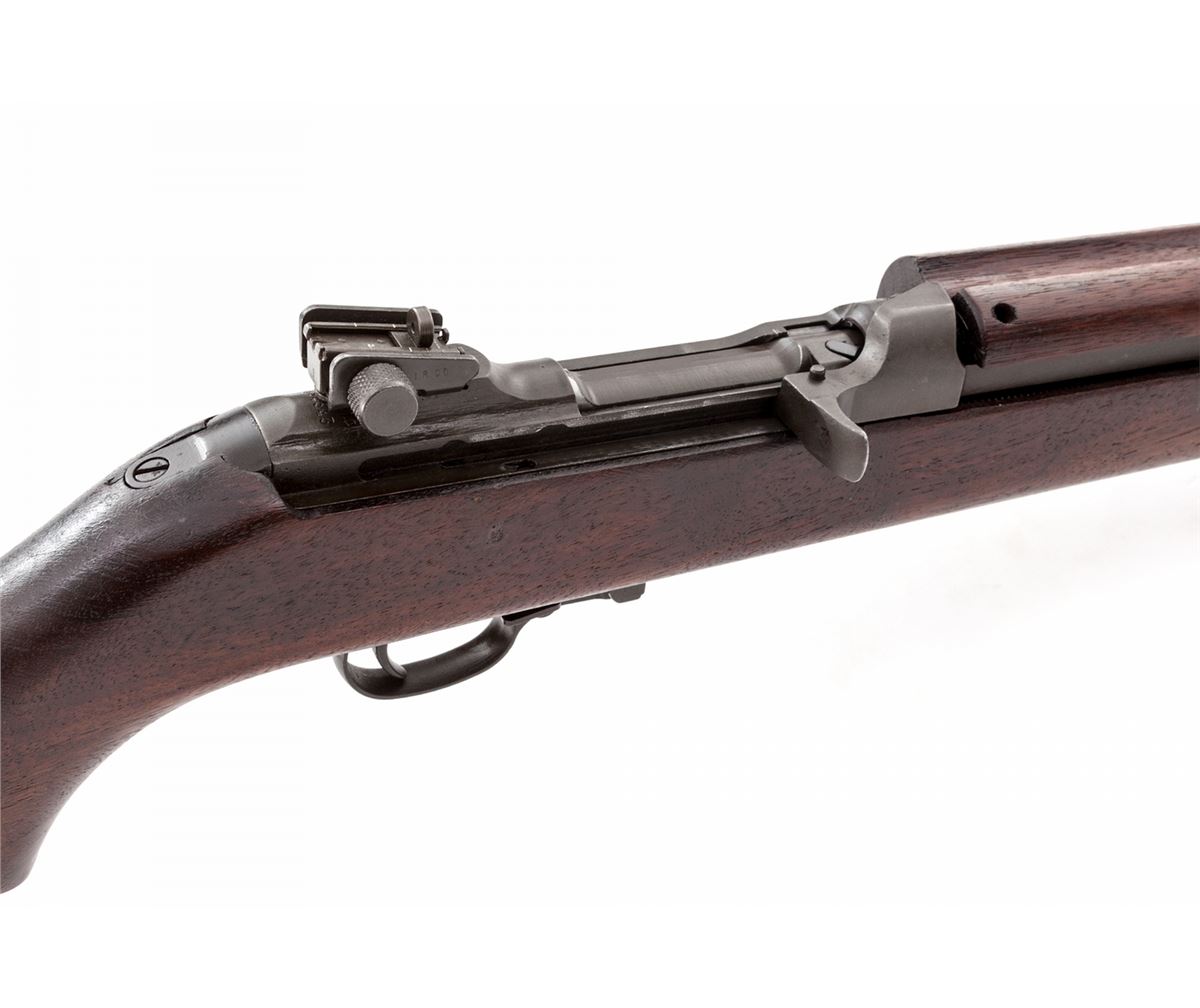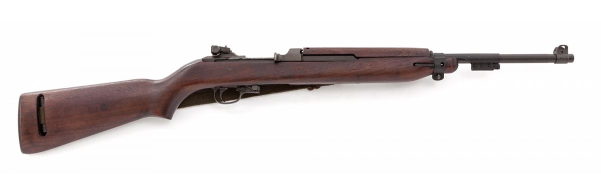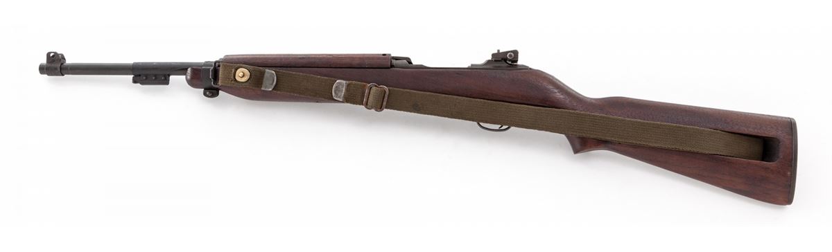 U.S. M1 Carbine, by Quality Hardware, #4584343, .30 M1 Carb. cal., 18'' IBM barrel dated 11-43, blue finish, with ''SG'' cartouched walnut stock and upper handguard. Rifle features two-rivet handguard, flat bolt, Type 3 rear sight, flip safety, and bayonet lug. Condition is excellent as arsenal overhauled, retaining approx. 96% original finish. Stock with only the lightest scuffs. Good action, bright bore. No mag. Est.: $1,200-$1,800. (C&R)