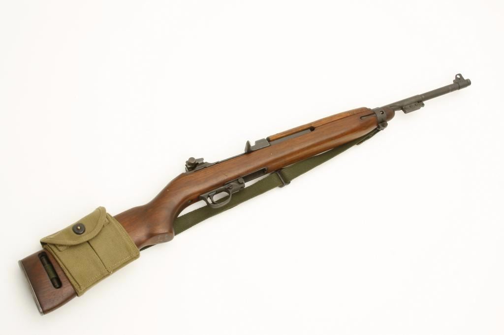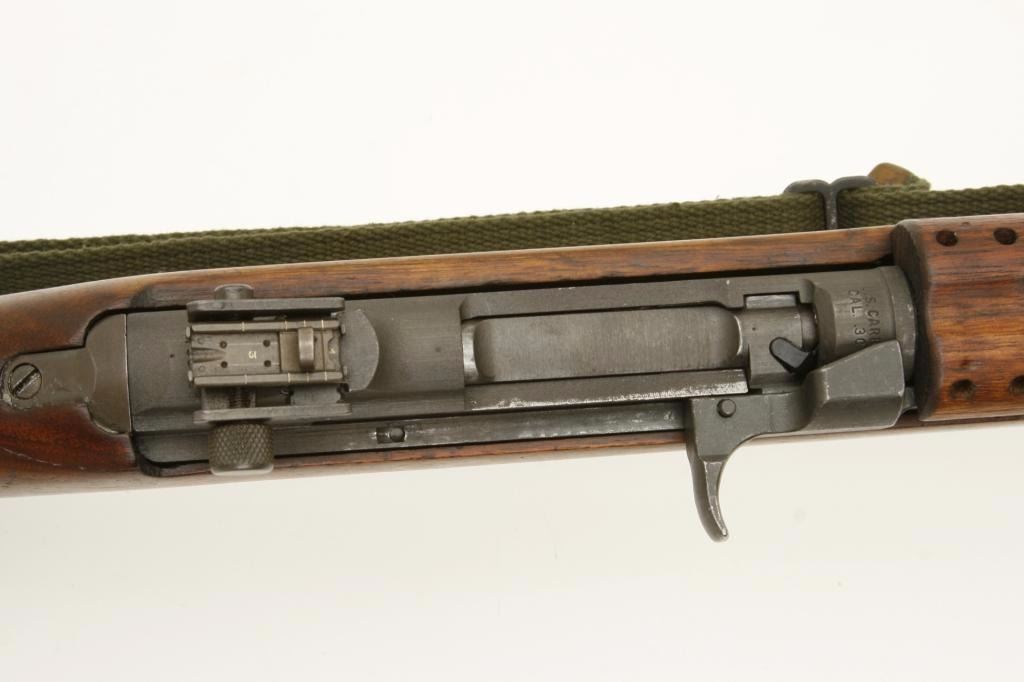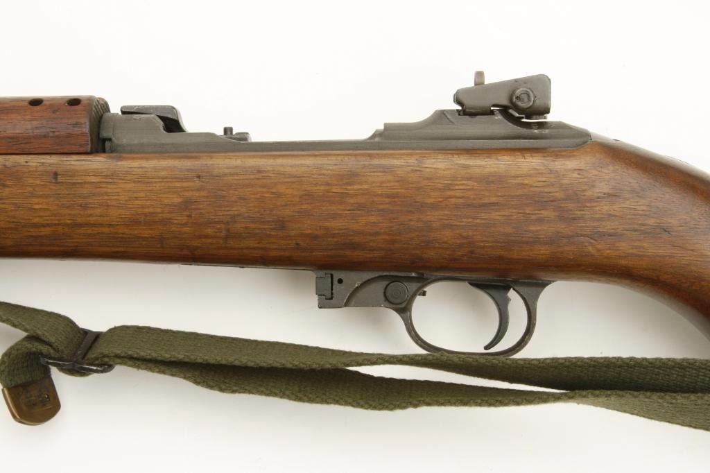 .30 caliber, serial #478686. The carbine is in overall very good condition with an 18” barrel. The carbine retains the majority of its military finish with a Springfield Armory marked barrel dated 8-52. The smooth wood stock is in good condition with OD green canvas sling and oiler. The stock has a “P-J” cartouche in the sling cutout and has an approximately 1” chip which has been repaired behind the tang. The carbine has no visible import marks. The bore is good, the action crisp and markings are sharp on this carbine. The lot also includes an OD green canvas magazine pouch marked, “U.S.” and “Avery 1943”. (C+R) Est.: $400-$800.