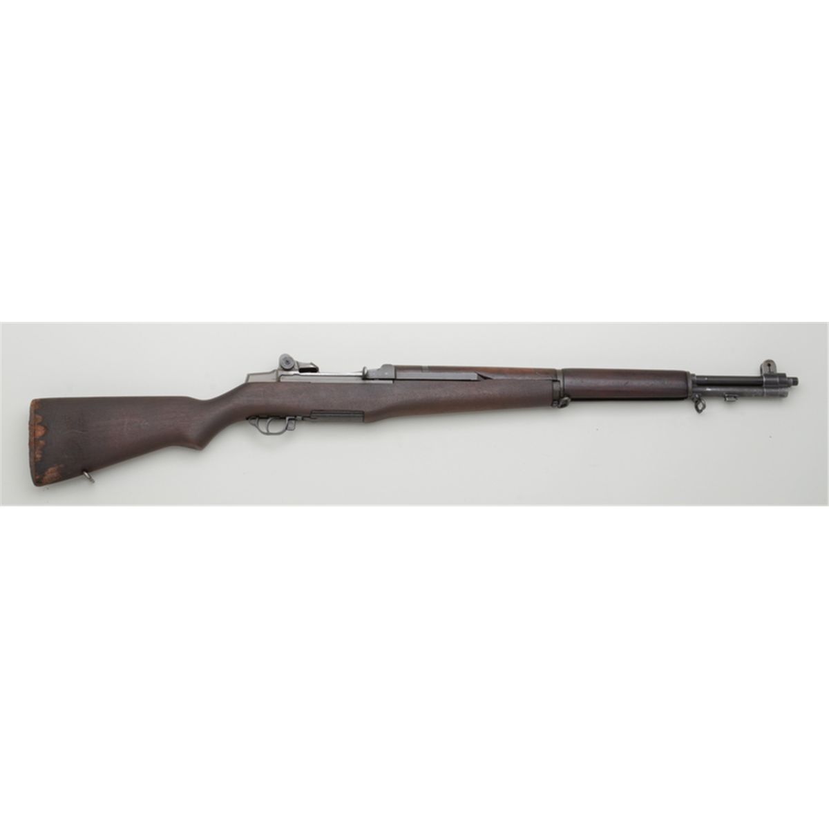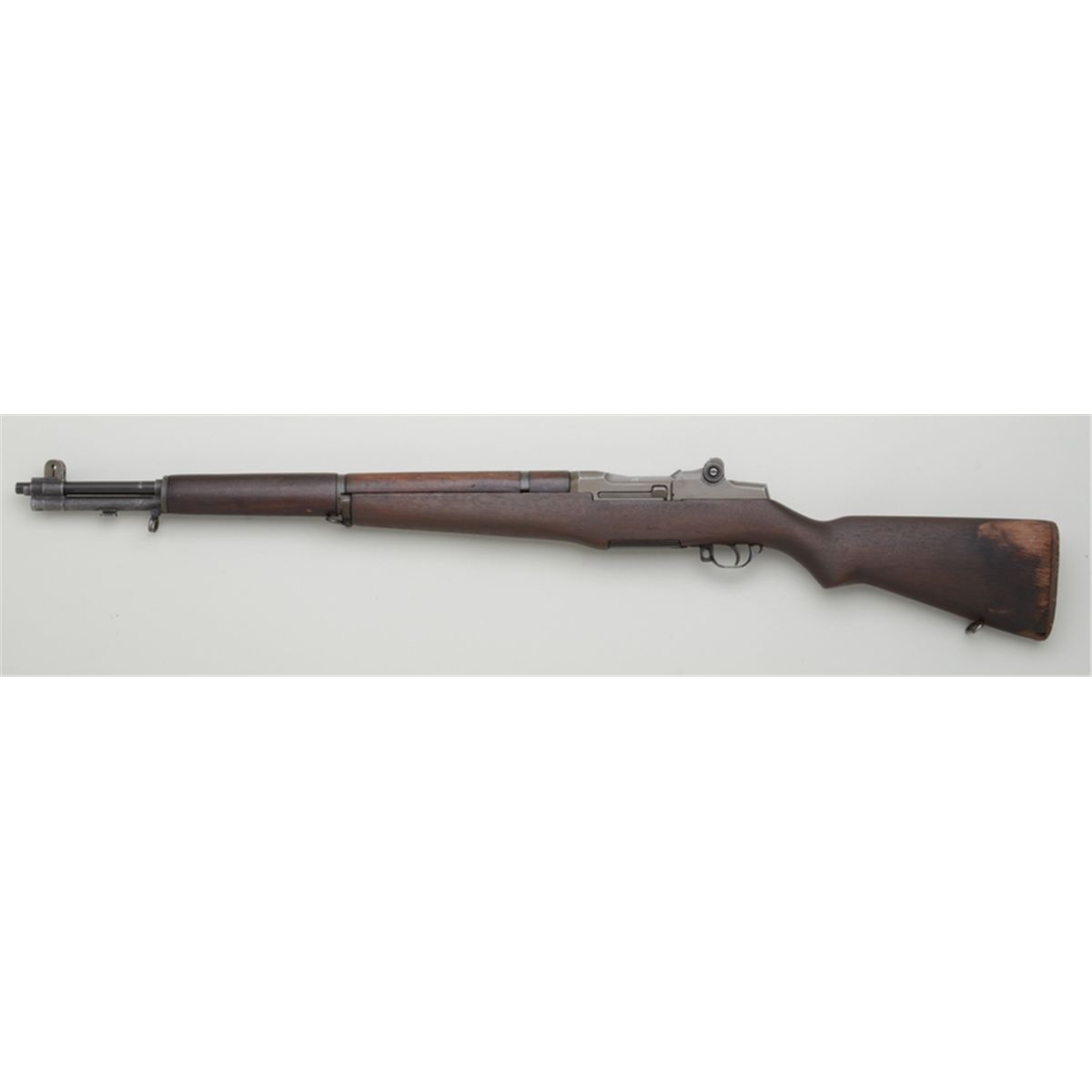 U.S. M1 Garand semi-auto rifle by International Harvester, .30 cal., 24” barrel marked “SA 8535448 4 63 Y 19 PM”, military finish, wood stock, #4541072. This gun is in overall good condition showing considerablemat military olive green finish, very good bore, action and markings; good wood stock with circle P proof behind trigger guard and “200” stamped on the end of the semi-pistol grip; no visible inspector cartouches, buttplate has been in moisture and is rusted; some of the rust has migrated into the end of the wood butt and both areas should be carefully cleaned to arrest the further spread of the rust. Est.: $400-$800.