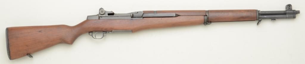 U.S. M1 Garand semi-auto rifle by Winchester, .30 cal., 24” barrel marked “Winchester” and dated “7-67”; military mat green finish, wood stock, sling swivels, #2392061. This gun is in overall very good to fine condition as rebuilt in the 1960’s with script-marked barrel and all visible Winchester marked parts (receiver, barrel, action, trigger guard, etc.); top of receiver etched “0-66”; crisp action, fine bore, sharp markings, very good + wood stocks with no visible proofs or inspector cartouches; a desirable maker in the M1 Garand series and is likely a good shooter as rebuilt. Est.: $750-$1,500.