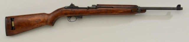 U.S. M1 carbine, receiver marked Irwin-Pedersen, .30 cal., 18” barrel marked Buffalo Arms with flaming bomb proof and dated 8-1943, military finish, tan woven sling, metal oiler, flat bolt, flip-up twostage rear sight, import-marked, no magazine, wood stock, #1777227; accompanied by fleece-lined tan canvas soft case. This gun is in overall very good condition showing the majority of its parkerized military finish,very good bore, crisp action, good markings, very good wood stock with early “I” cut out for oiler, stock is overall good to very good with “IP” in square and crossed cannons on right side of butt stock and what appears tobe “IR-IP” stamped on the flat in the sling channel. Irwin-Pedersen M1’s are one of the rarest variations to find in any condition and are highly sought after by collectors. Est.: $2,000-$4,000.