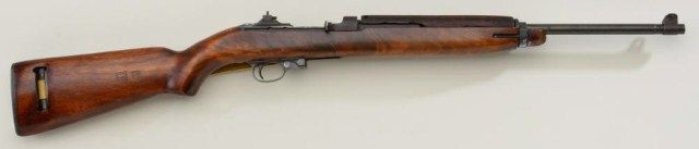 U.S. M1 carbine, receiver-marked maker Irwin-Pedersen, .30 cal., 18” barrel marked Underwood with flaming bomb and dated 3-43, military finish, early wood stock with “I” cut on right side of stock for oiler, tanwoven sling with metal oiler (sling marked “F-S Co. 1943”), #1764164; accompanied by a fleece-lined tan canvas U.S. marked soft case. This gun is in overall very good condition showing considerable militaryfinish remaining, good to very good bore, crisp action and markings, no magazine, flat bolt, flip-up two stage rear sight, very good wood stock showing an older re-finish to lower stock that displays finer graining than usual and inspector cartouched “IP” in rectangle and crossed cannons on the right side of the butt stock and “IR-IP” marked in sling channel flat; top wood hand guard shows plain graining and has not been re-finished. Irwin-Pedersen M1’s are one of the rarest variations to find in any condition and are highly sought after by collectors. Est.: $2,000-$4,000.