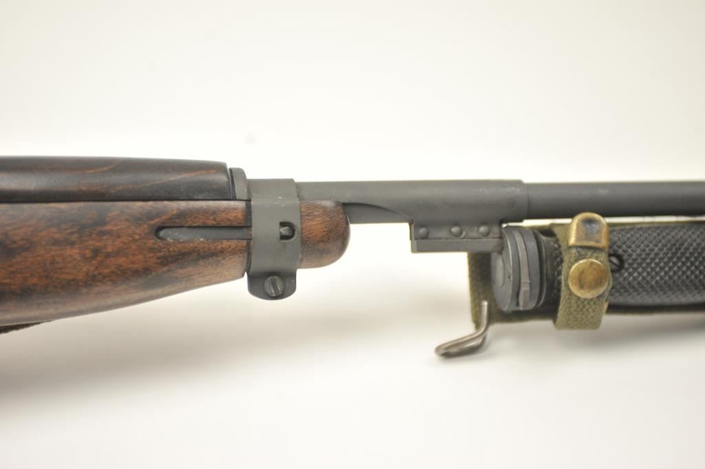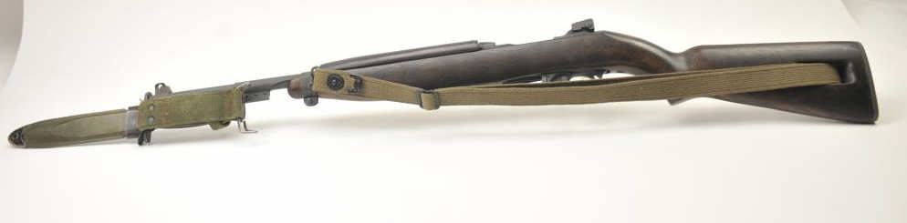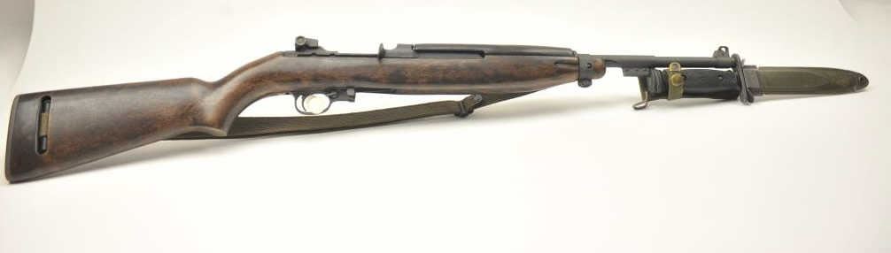 U.S. M1 semi-automatic carbine by Inland, .30 caliber, Serial #5162950. The carbine is in fine overall condition with an 18” Inland marked barrel dated 1944. The carbine retains a significant amount of theparkerized military with storage and handling marks. The smooth wood stock is in very good condition as re-finished with the oiler intact. The bore is good, the action is crisp and the markings are sharp. The lotincludes a U.S. M8A1 marked bayonet with scabbard in very good condition. The bore is good and the action works well. Est.: $750-$1,500. (C+R).